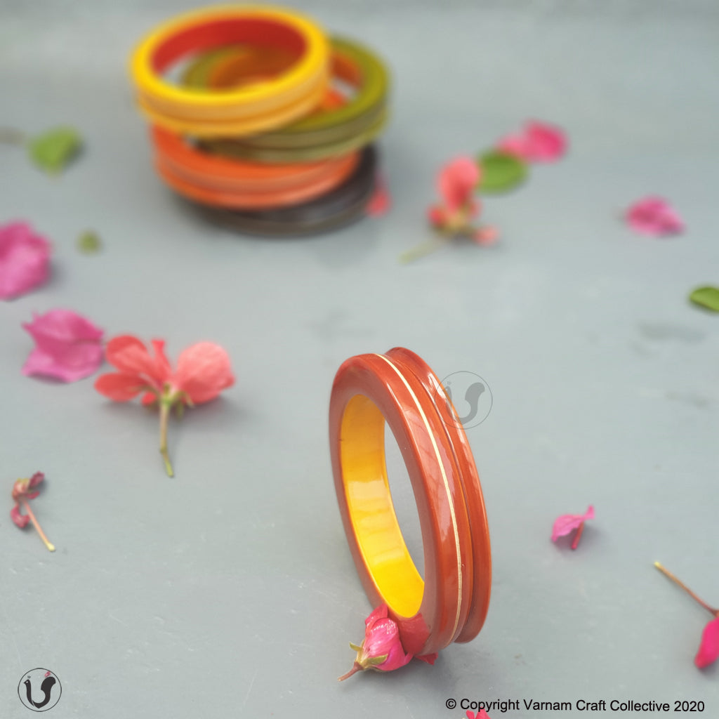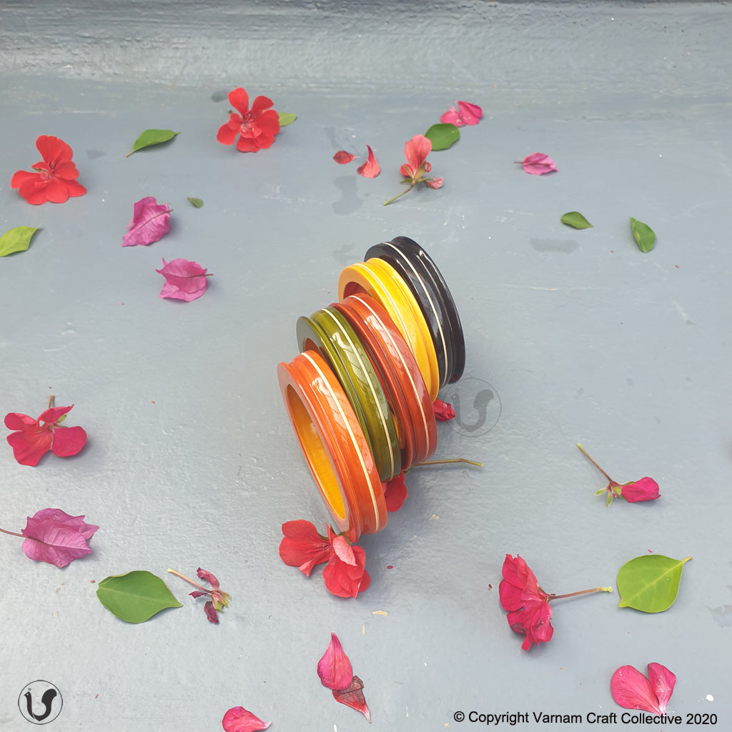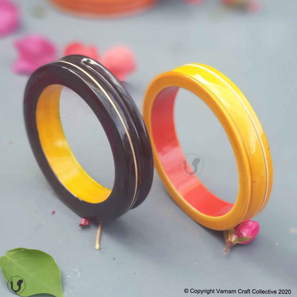 A unique one-of-a-kind style statement from the 'INBAM" series of wooden jewelry by Varnam. This piece has been handcrafted by artisans from Channapatna using the 200 year old toy craft of lac turnery. This is an eco-friendly craft. The colours used are natural dyes and non-toxic. The wood used , 'wrightia tinctoira' or ‘aale-maraa’ is extremely safe. Known for its medicinal properties, the wood is extremely lightweight. Please note that the colour may vary a bit from the one in the pic.