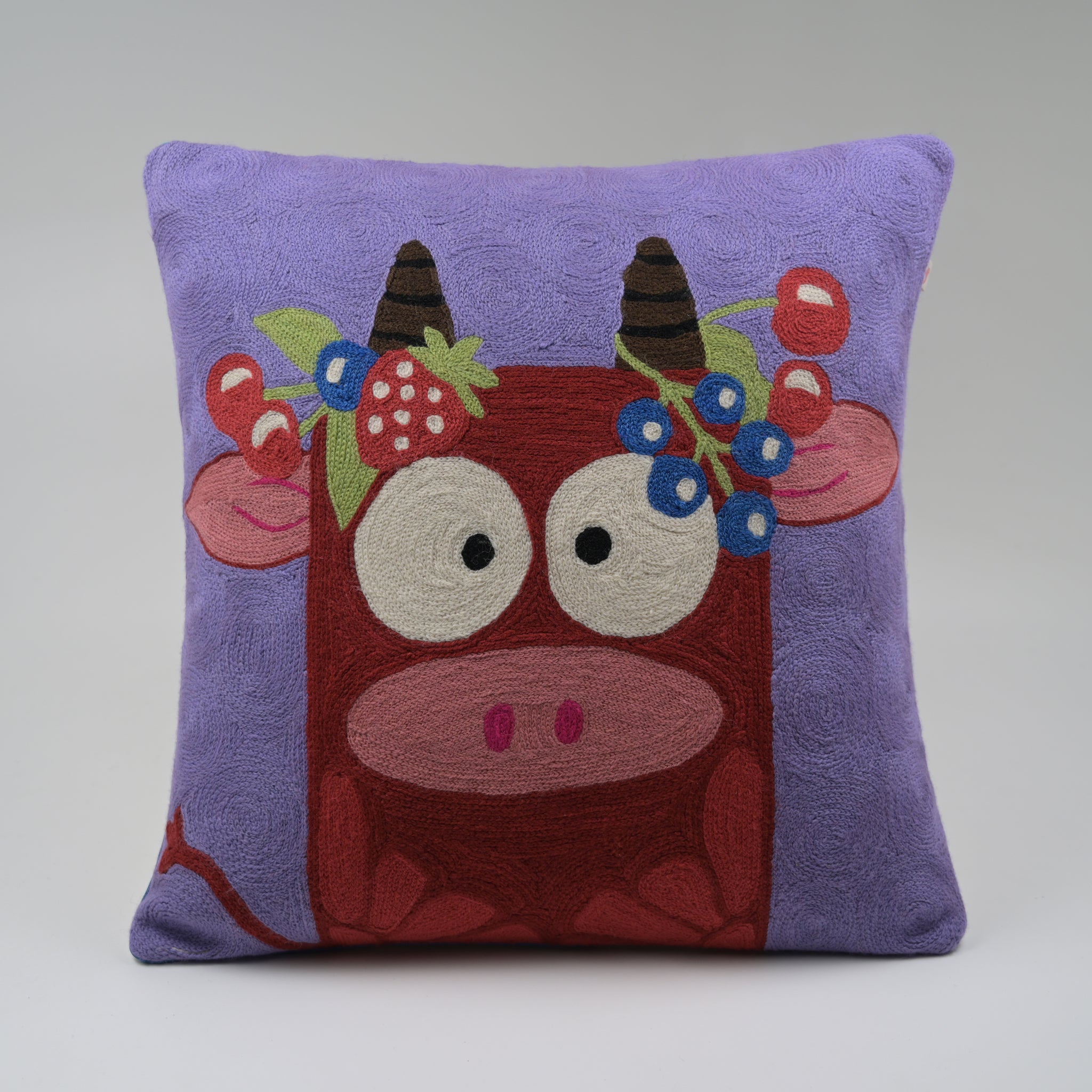 • Load image into Gallery viewer, Mooberry Crewel Cushion