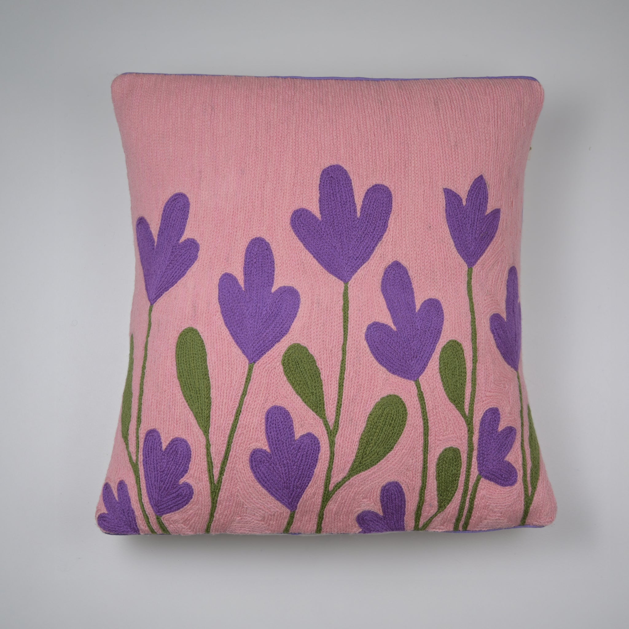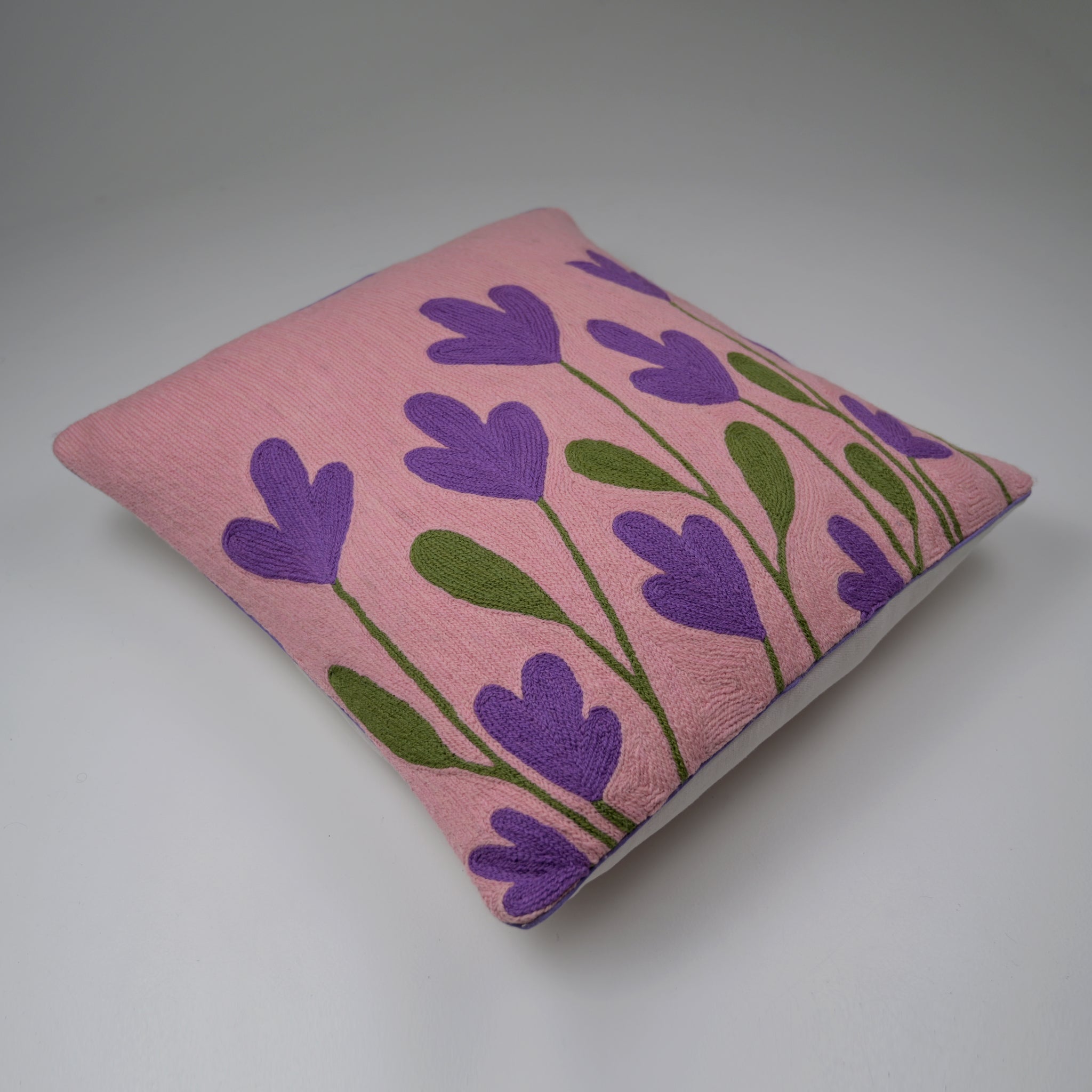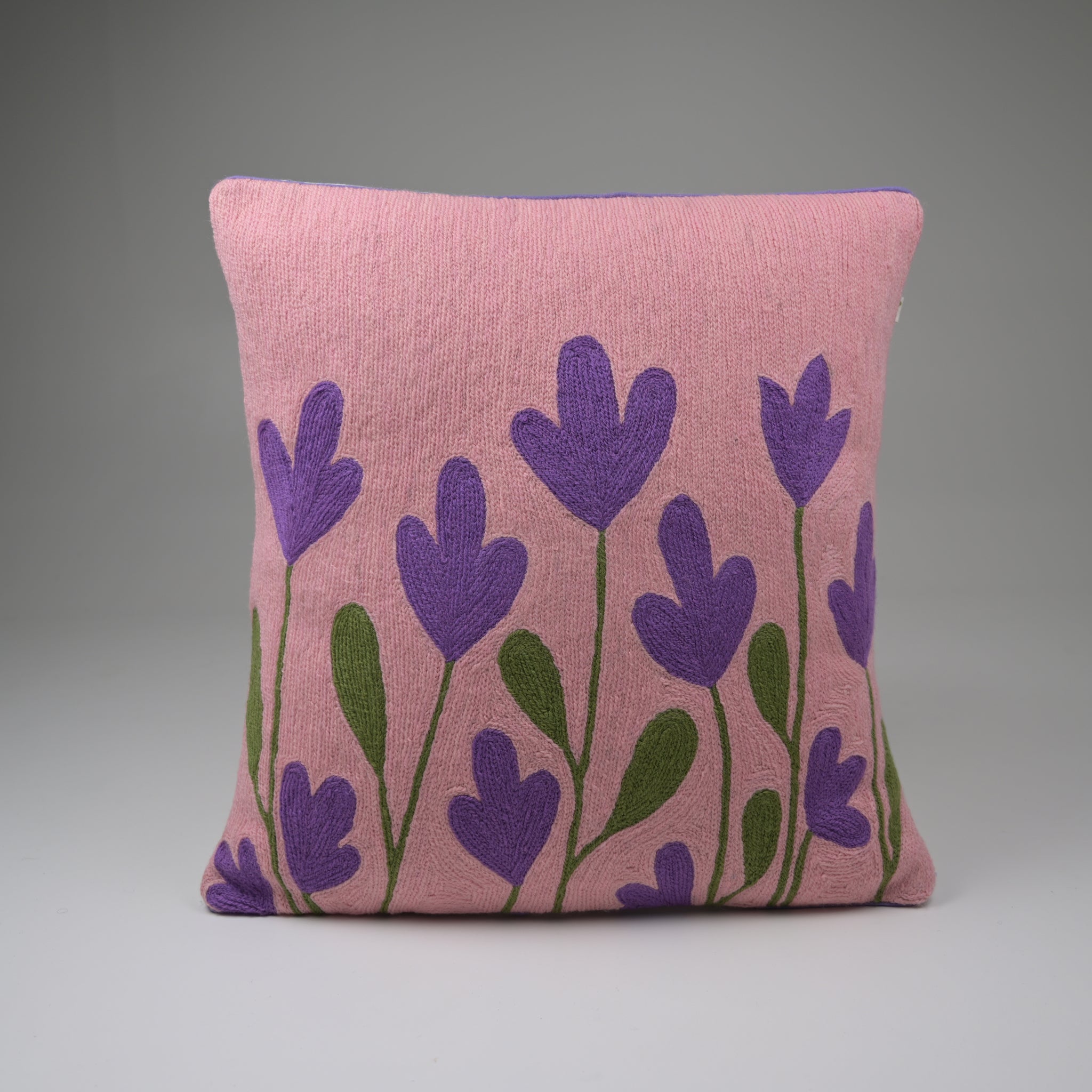 Flowers inspired from our resident herb gardener, Oinkston the pig , forms a background for this beautiful hand embrodiered cushion cover from Kashmir.