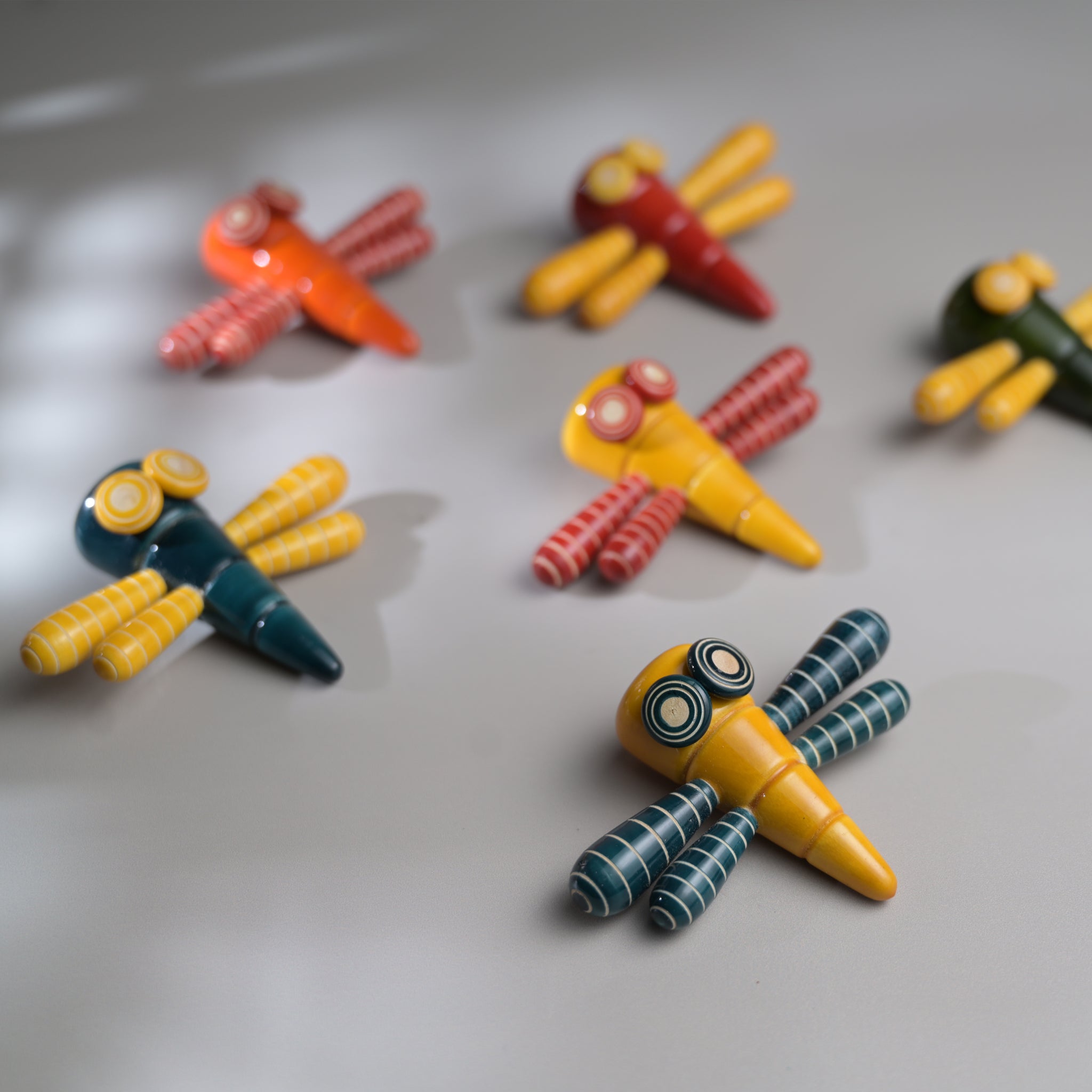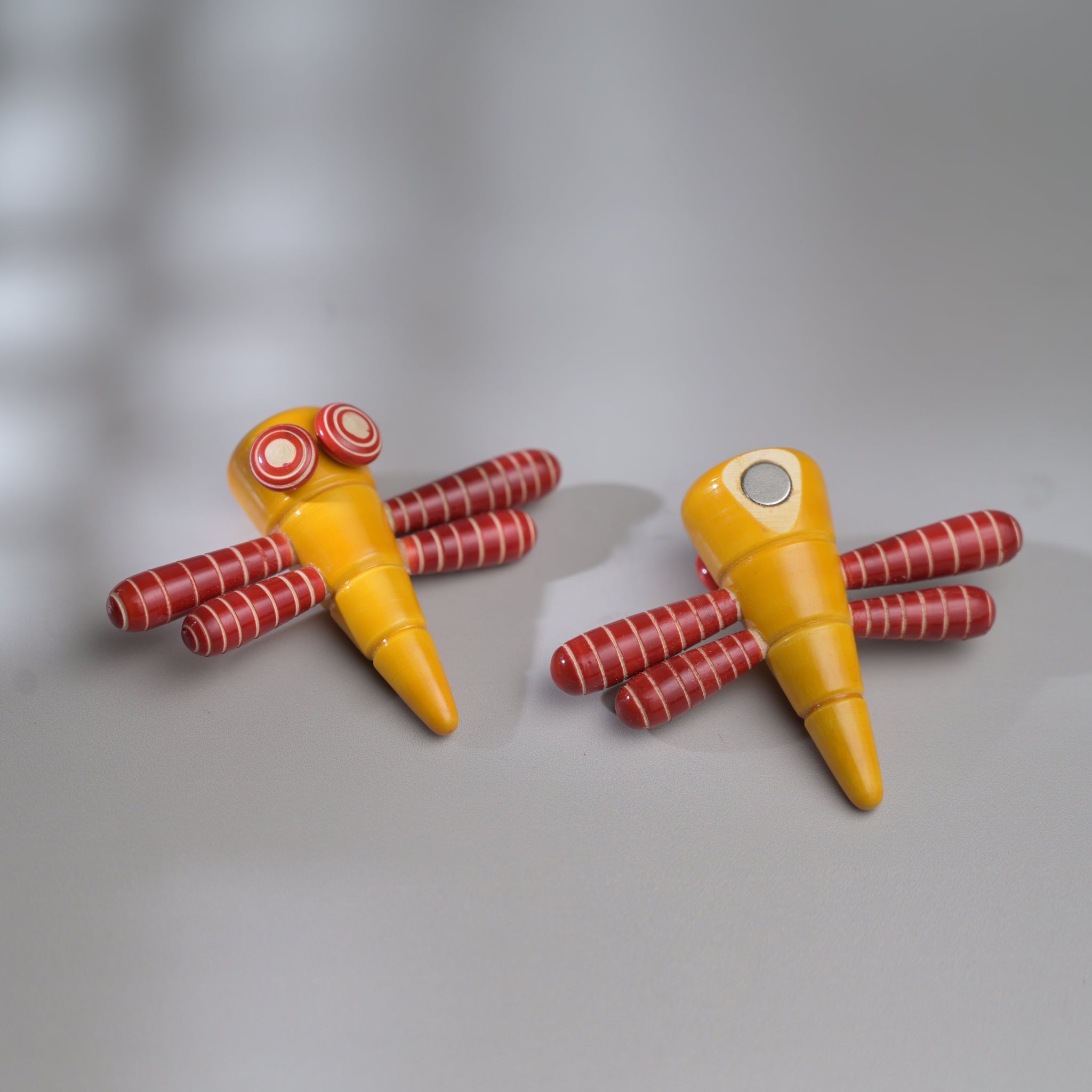 Our very own popular dragonflies are now available as colourful fridge magnets. They can hold your cute little reminder notes too. Handcrafted by our artisans from channapatna, they make wonderful gift ideas too. The actual colours may vary a bit from the ones in the pictures.