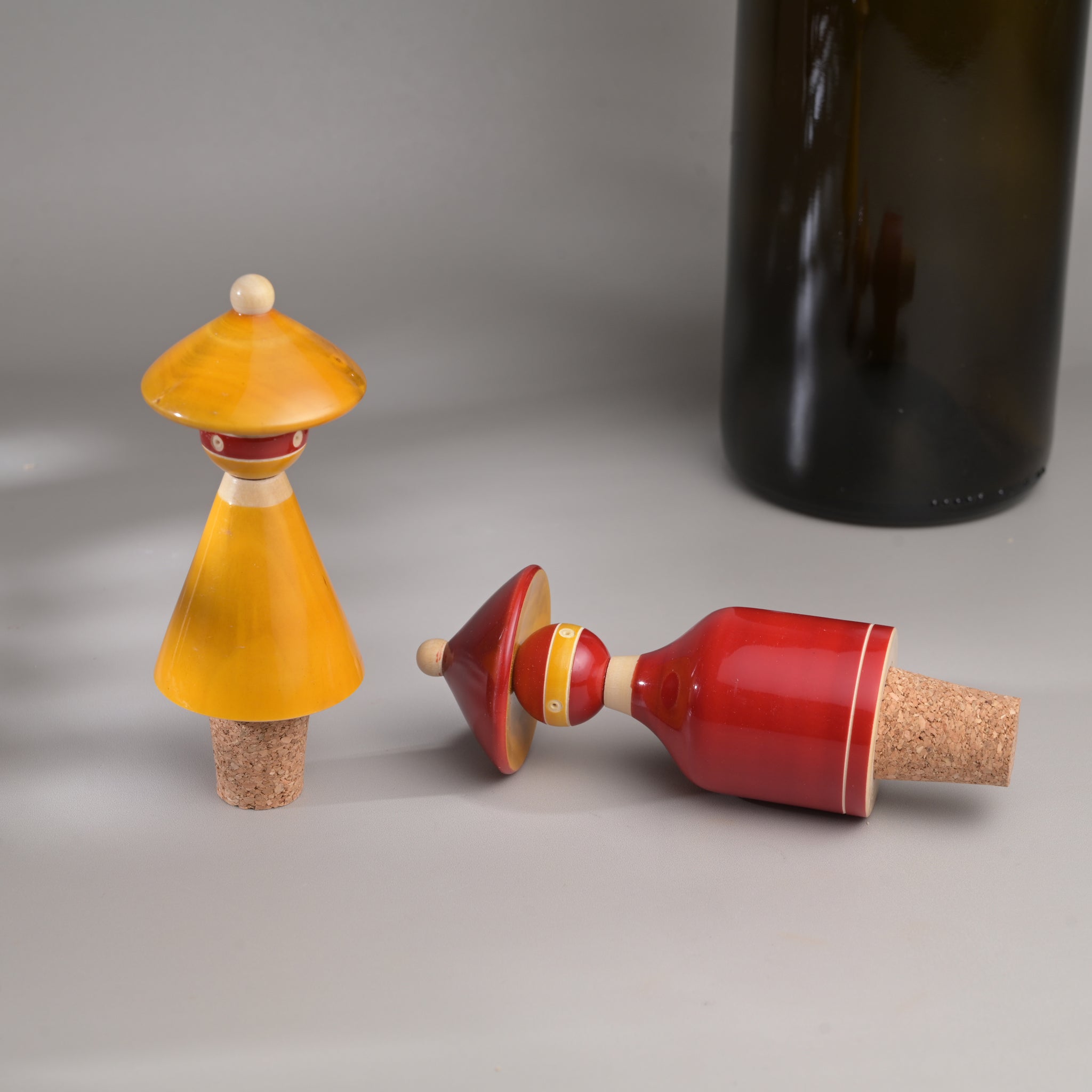 The Madhatters are a family of loonies that are here to keep a lid on your high spirits. A pair of wooden wine bottle stoppers, each has been hand-crafted by an artisan from Channapatna using the traditional craft of lac-turnery. The colours used are 100% natural. These colourful vibrant bar accessories make great gifts.