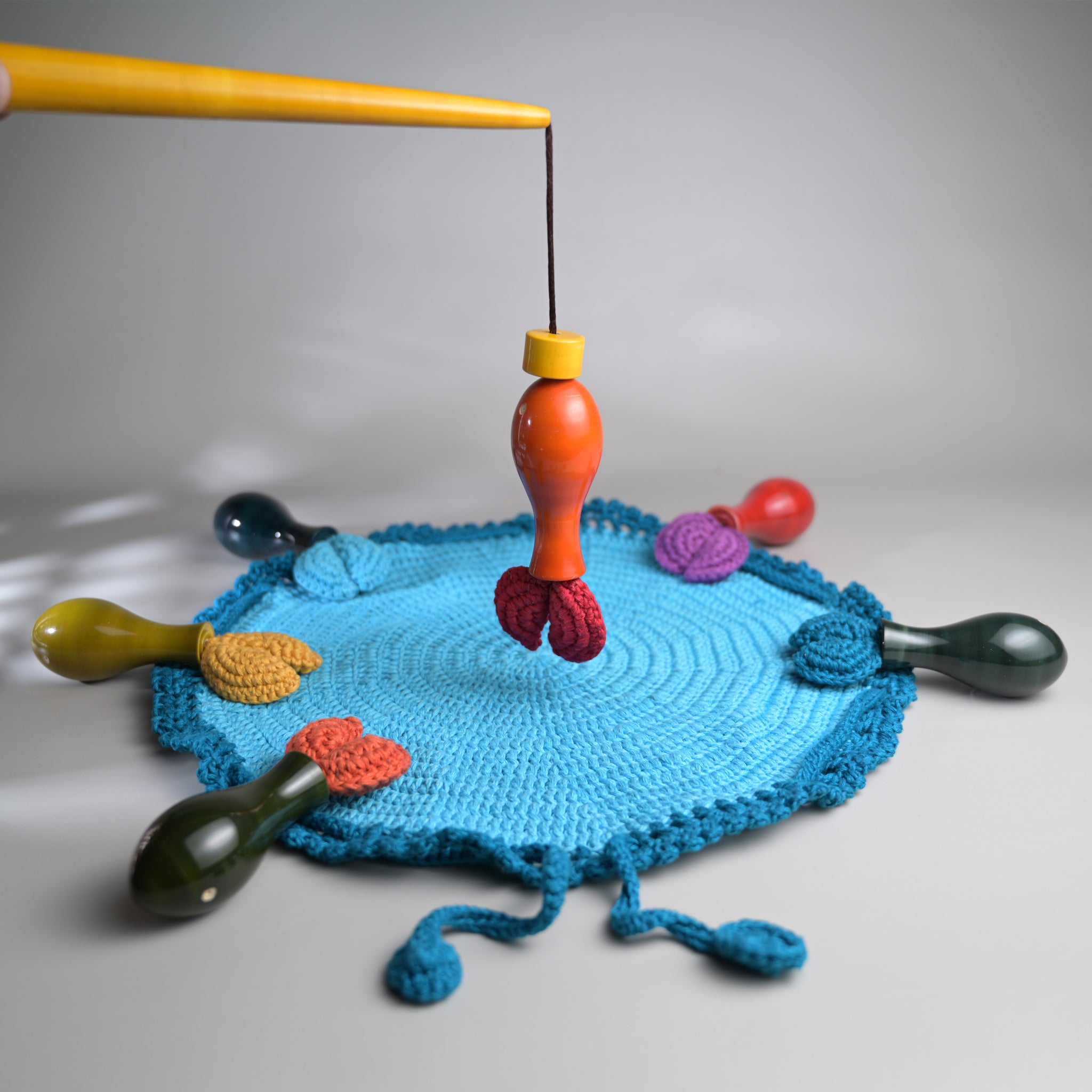 FISHY WISHY is an exciting game where kids use fishing rods to catch colourful, handcrafted fish. It promotes fine motor skills as children develop hand-eye coordination while aiming for the fish. The game fosters patience, focus and problem-solving as our little players strategize to catch the most amount of fishes. With its playful design, it also sparks creativity and curiosity. This game encourages healthy competition and helps children build social interaction skills