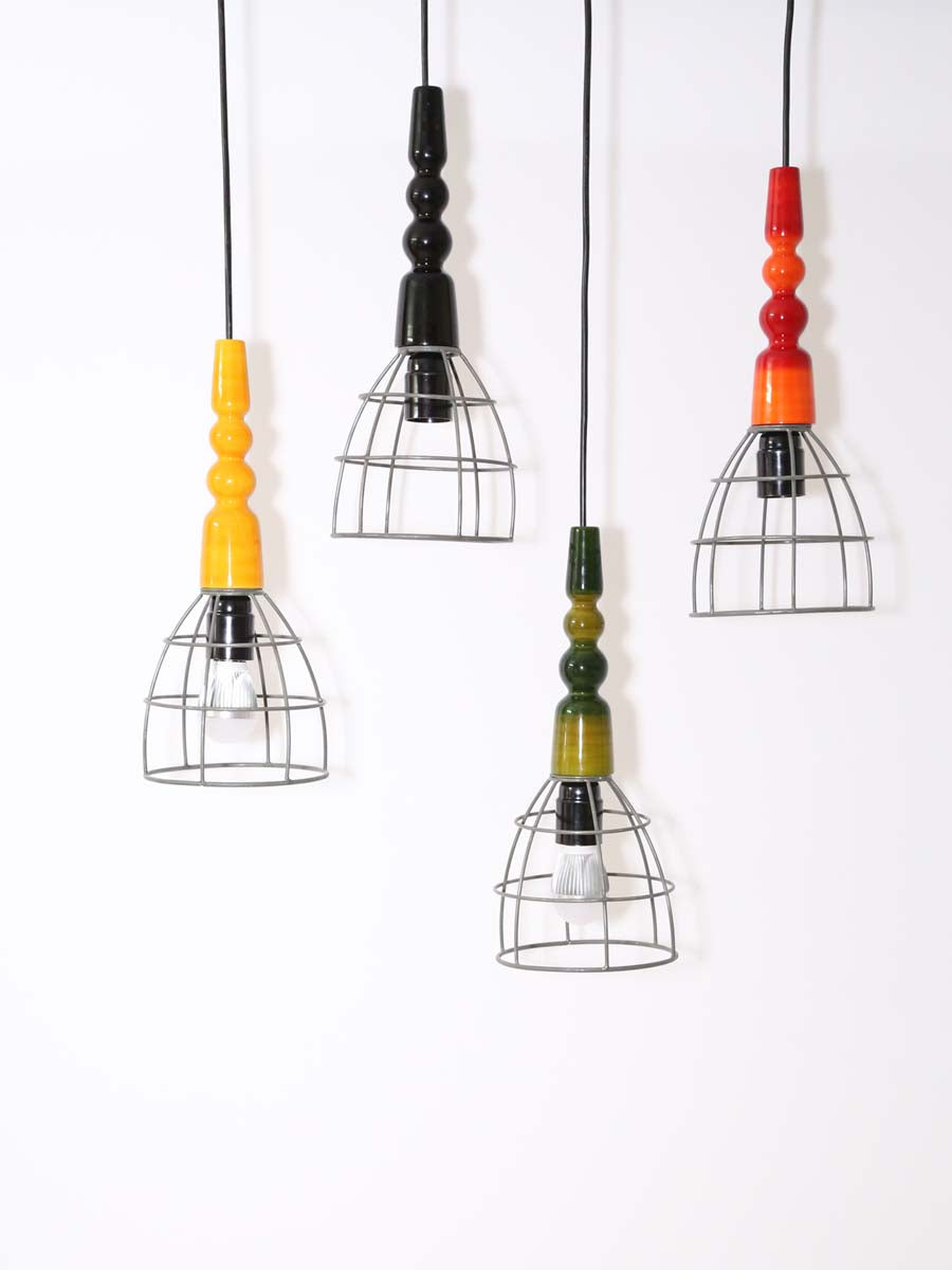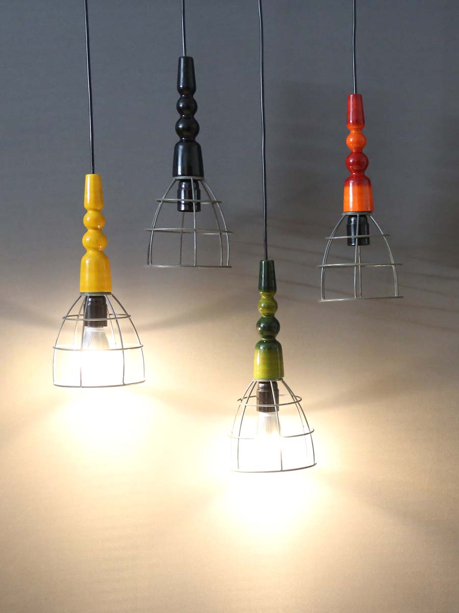 These lights are unique as they combine an industrial look with the colourful channapatna wooden accessories. The colours used are safe and natural. A one-of-its-kind piece handcrafted by our artisans from Channapatna. Please note that the price indicated is for one piece only. The droplight comes with a 1 metre wire, wooden accessories to be hung on the wire. The bulb is not included in its price.