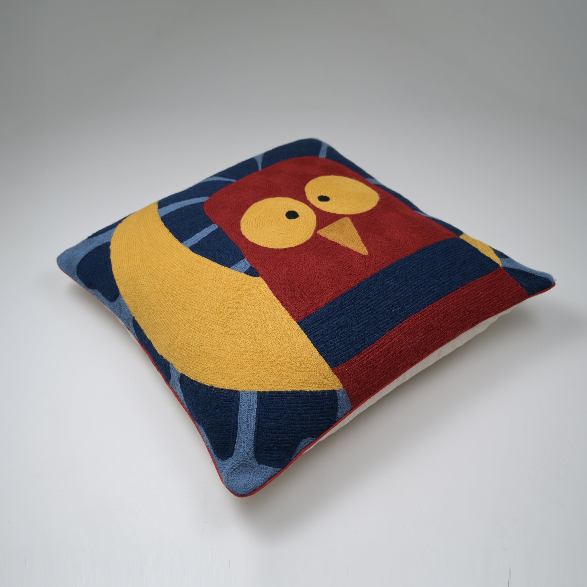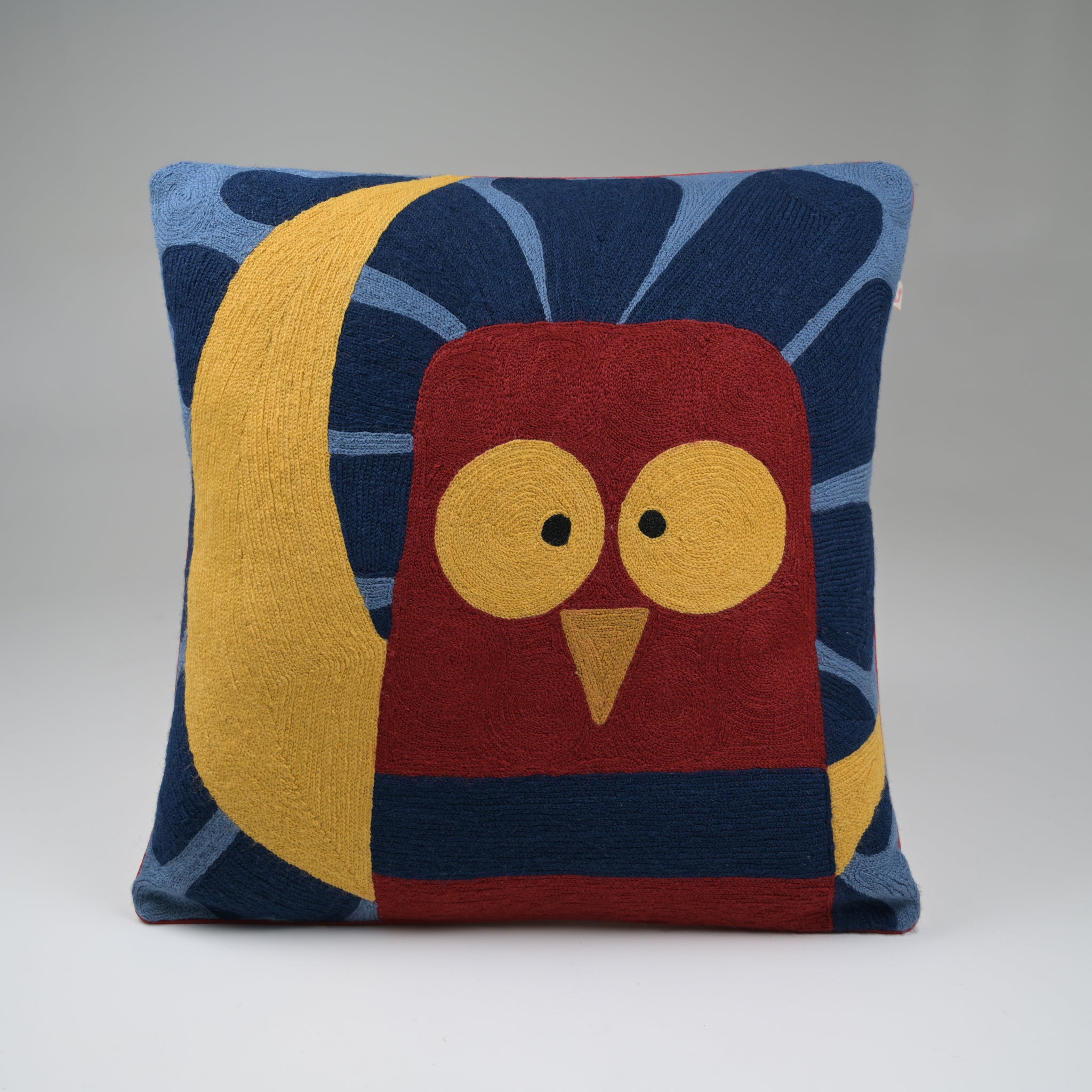 Hootley our gossip-loving nerd owl from the land of the Snugglewalas finds her own corner with this beautiful Crewel embrodiered cushion cover from Kashmir.