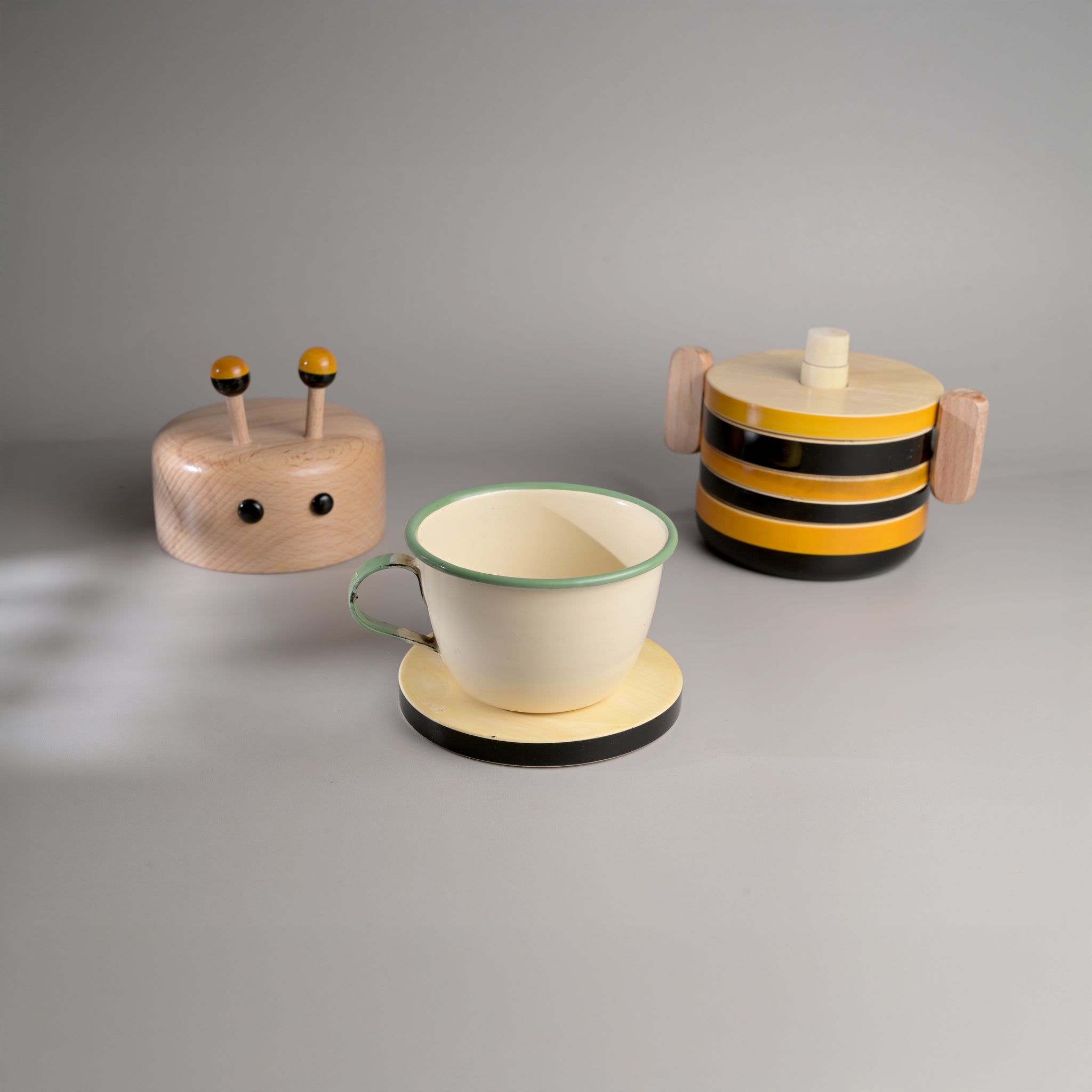 Each piece has been pain stakingly hand-crafted by artisans from Channapatna using the traditional lacquer ware turning technique. The colours used are natural and non-toxic. The wood used for all channapatna lac-ware products is completely safe and is 100% eco-friendly. Any irregularities on the wood are part of its natural beauty.