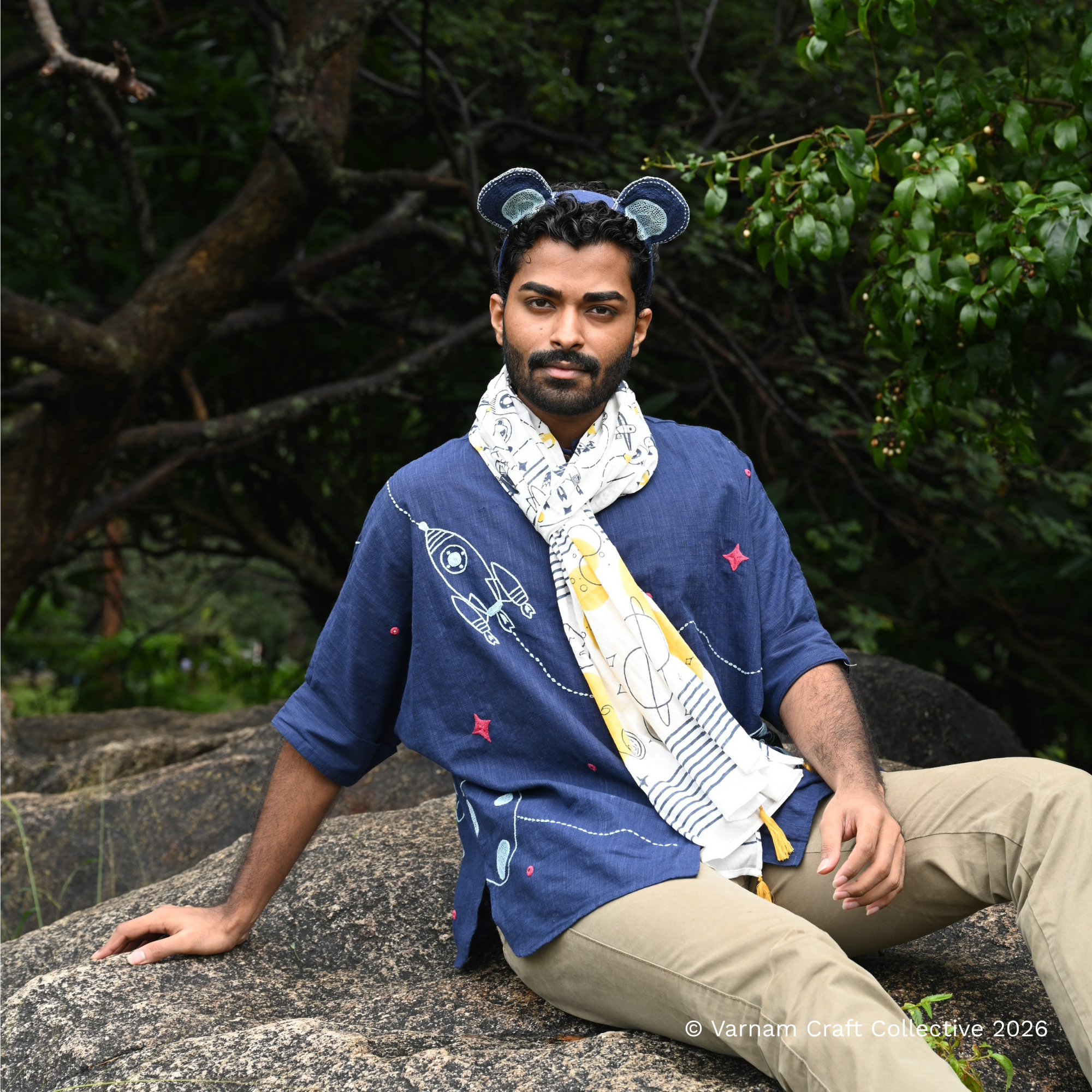 This gender-neutral side anti-fit shirt is made from Kanchi cotton fabric with detailed hand embroidery by the Lambadi women of Sitlingi, Tamil Nadu.