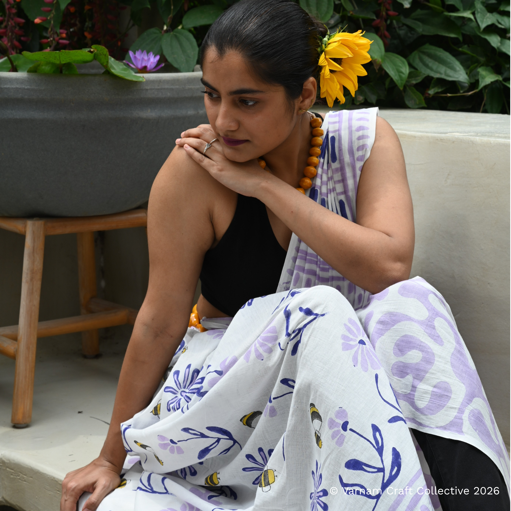 This uber soft cotton mulmul saree is a contemporary take on the traditional hand block printing craft of Mughal Block printing, Amer. These handblock prints have been custom made using azo-free dyes.