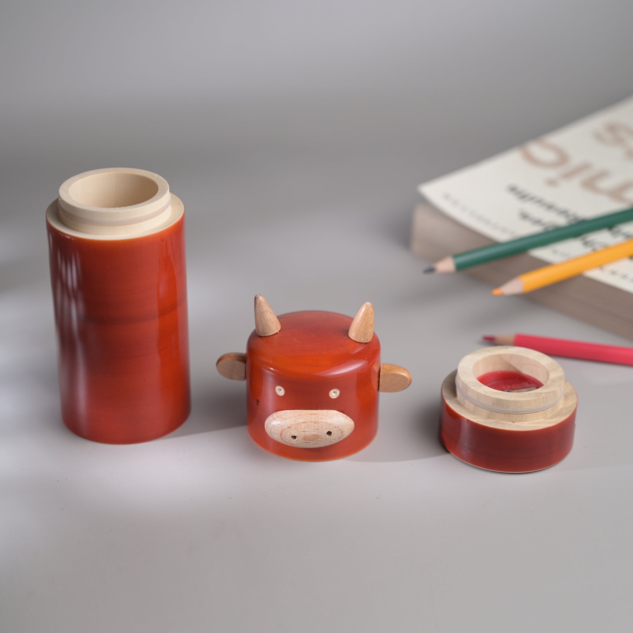 The colour pencil box is made from wrightia-tinctoria using the 200year old toy-craft of lac-turnery. The wood is extremely safe and known for its medicinal properties. The colours used are natural dyes and non-toxic.