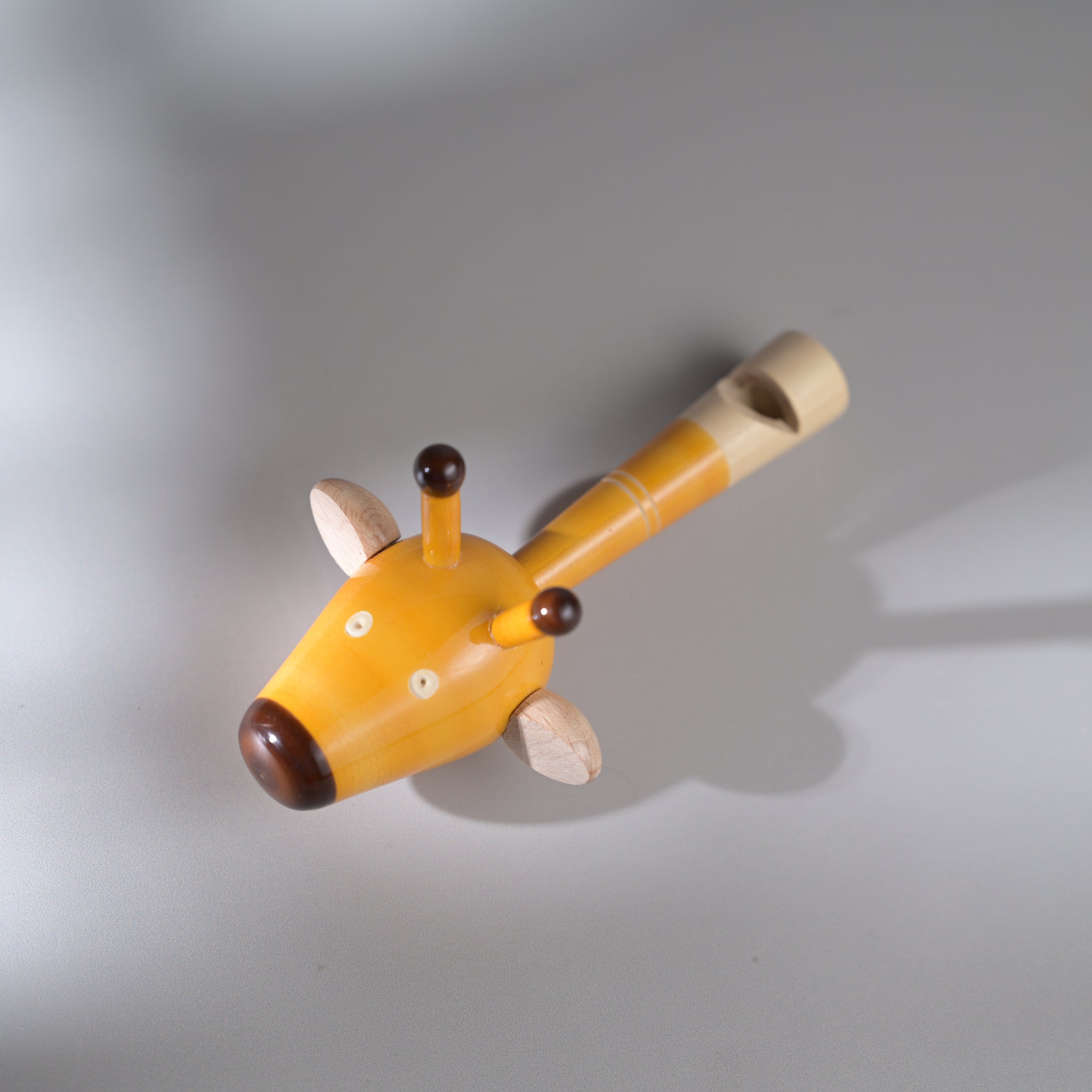 Each piece has been pain stakingly hand-crafted by artisans from Channapatna using the traditional lacquer ware turning technique. The colours used are traditional non-toxic vegetable colours. Any irregularities on the wood are part of its natural beauty. The animal heads are made of beechwood while the whistle body is made of wrightia tinctoria, or 'hale-mara'. Not suitable for kids below 3 years of age.