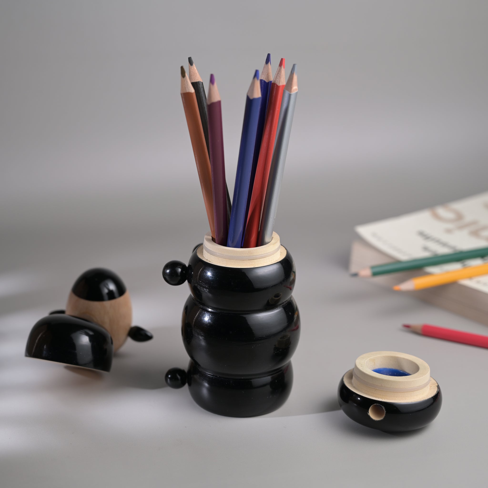 The colour pencil box is made from wrightia-tinctoria using the 200year old toy-craft of lac-turnery. The wood is extremely safe and known for its medicinal properties. The colours used are natural dyes and non-toxic.