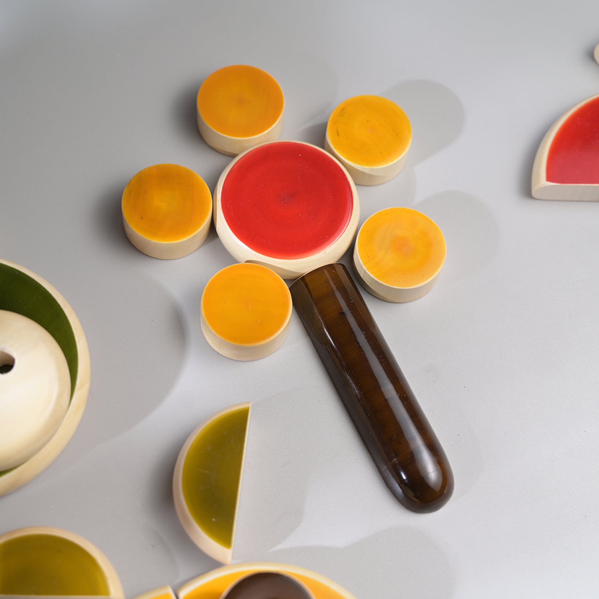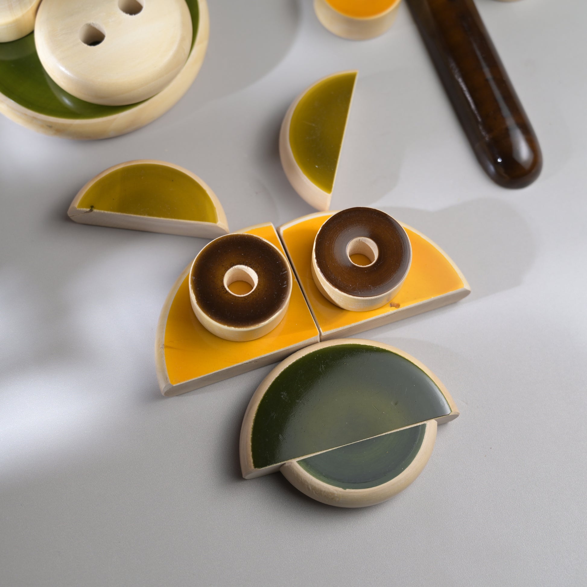 Each piece has been pain stakingly hand-crafted by artisans from Channapatna using the traditional lacquer ware turning technique. The wood used for all channapatna lac-ware products is completely safe and is 100% eco-friendly. Any irregularities on the wood are part of its natural beauty.