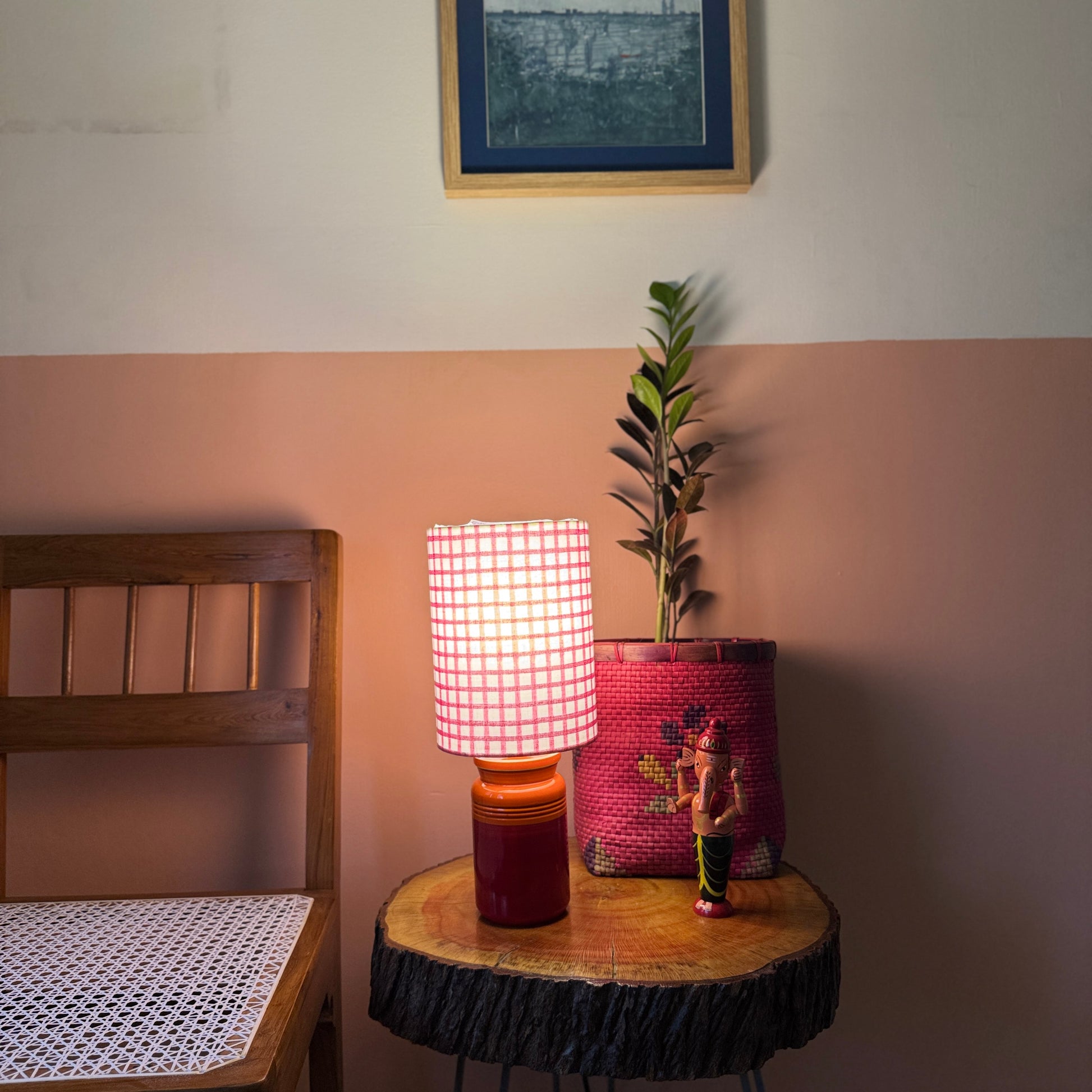 The cylindrical shade is made of premium handblock printed fabric from Sanganer, Jaipur.