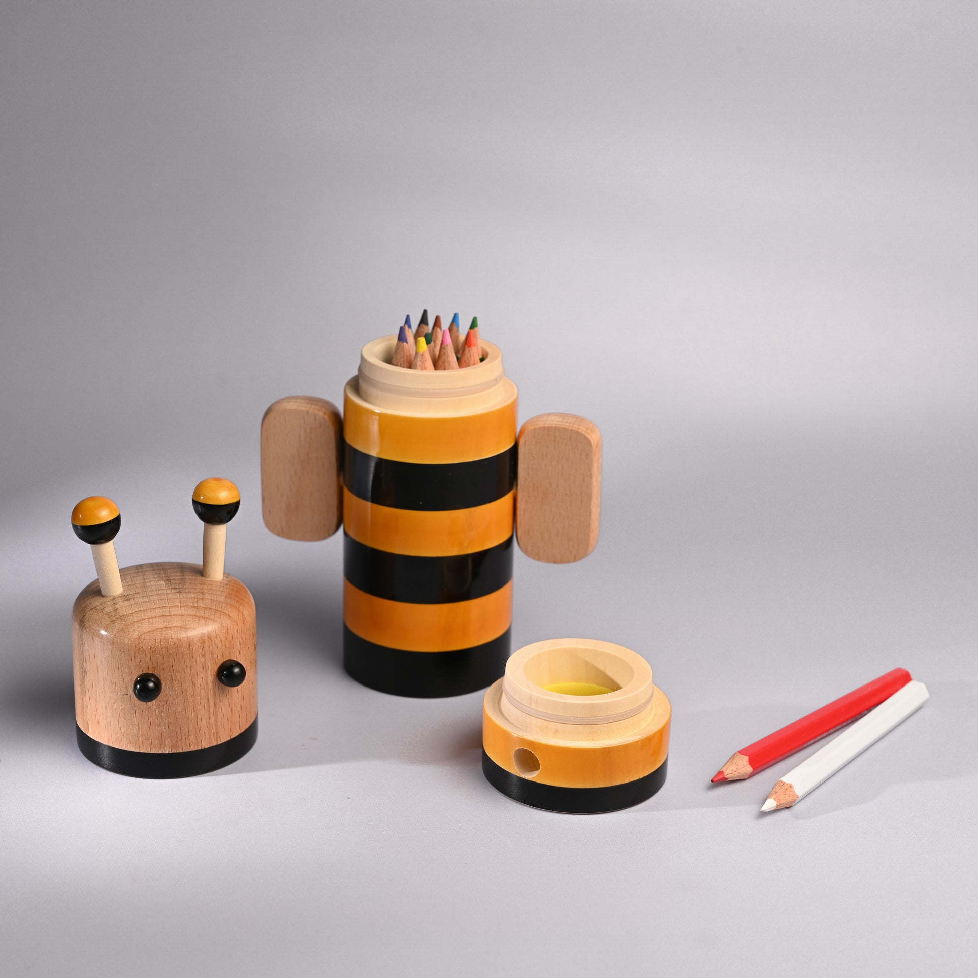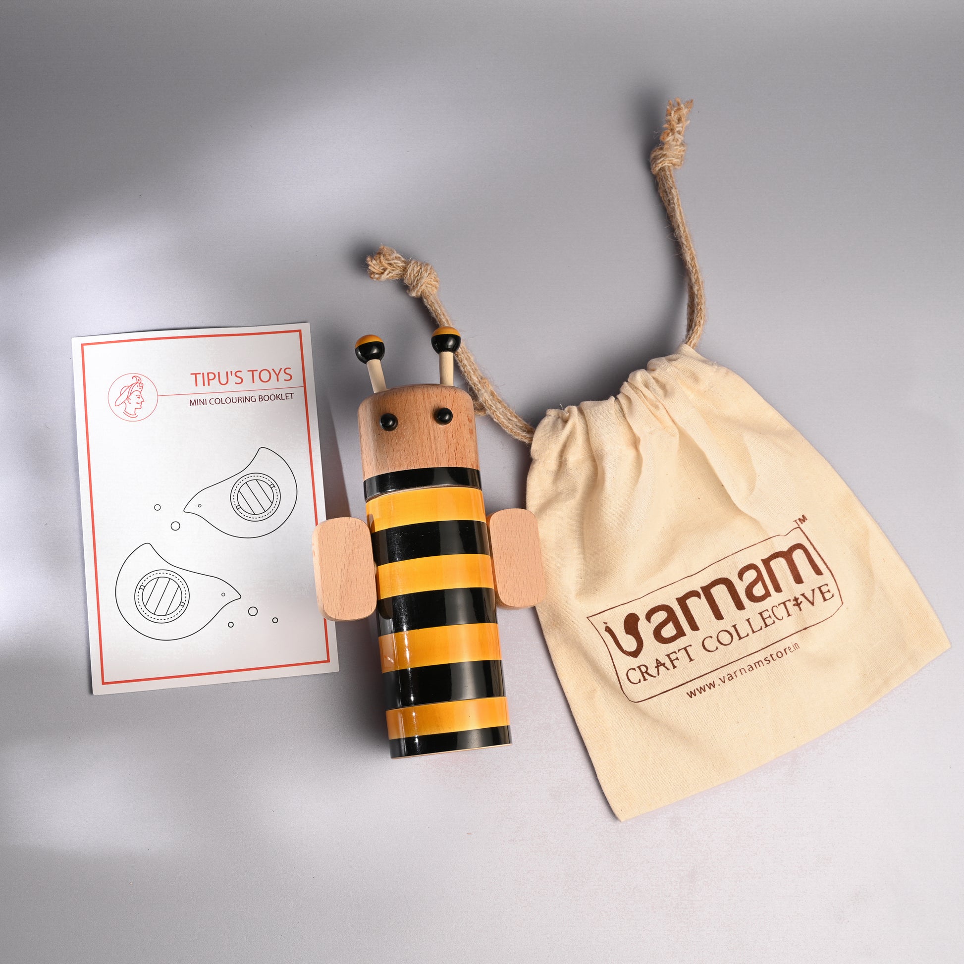 They are made from wrightia-tinctoria using the 200year old toy-craft of lac-turnery. The wood is extremely safe and known for its medicinal properties. The colours used are natural dyes and non-toxic.