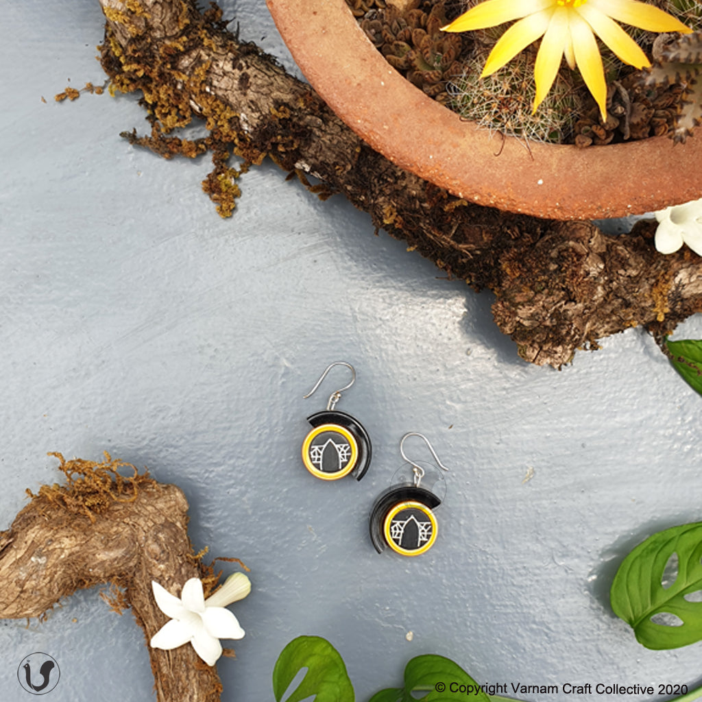 These lightweight wooden statements pieces are unique as they combine the bidri silver inlay craft with the Channapatna lac-turnery toy craft. Bidri is the silver inlay craft of North Karnataka. Our design philosophy has always been that good design keeps our crafts sustainable. The 'Darwaaza' series is an ode to the Darwaaza or the main entrance of the Bidar fort. This series showcases the versatility of the traditional Bidri metal craft in adapting itself to any idea. The Bidri metal craft has been traditionally associated with creating functional objects like hookahs, vases, betel/spice/jewel boxes and even spittoons. Our attempt has been to revisit this craft in todays’ context.