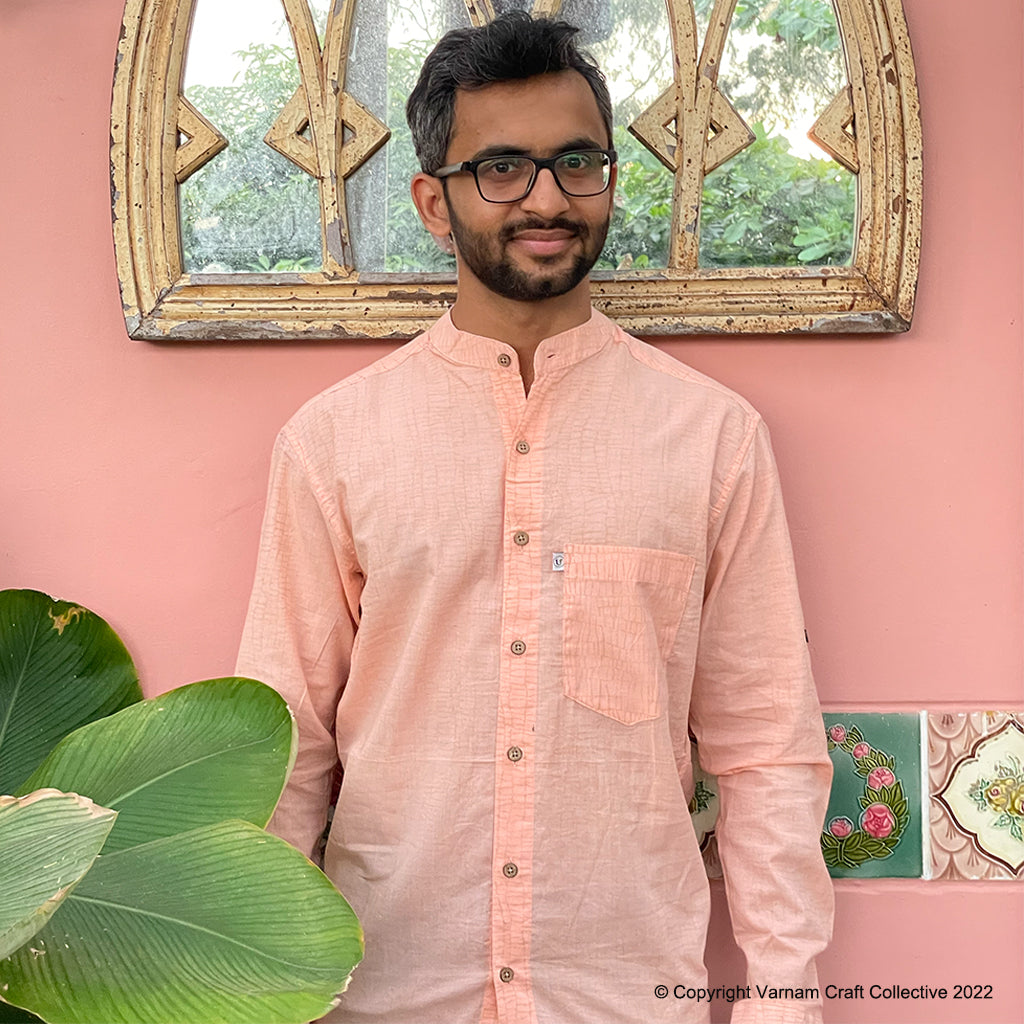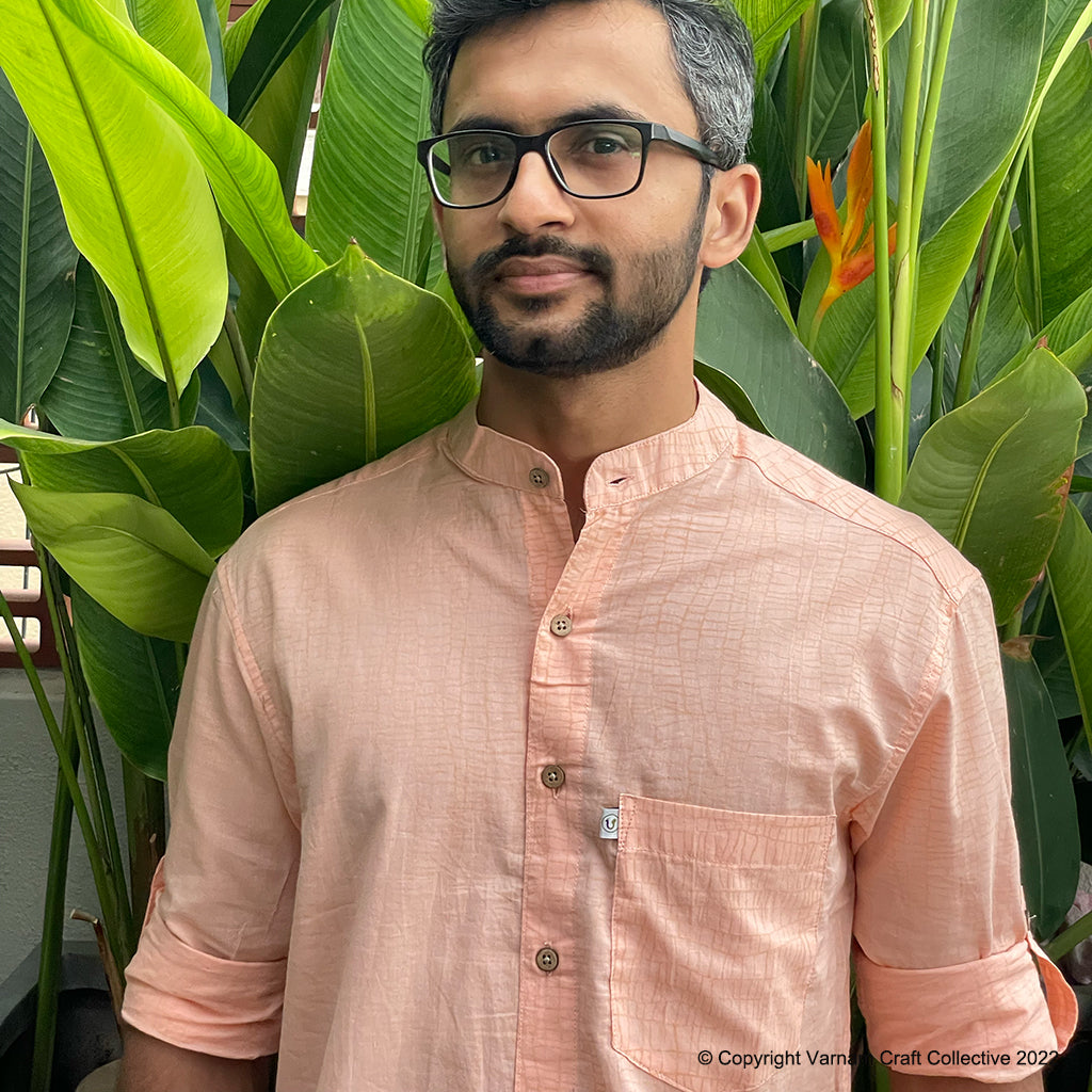 This uber soft, mulmul cotton shirt is created using the traditional hand block printing craft of Sanganer, Jaipur. The prints have been custom made using azo-free dyes.