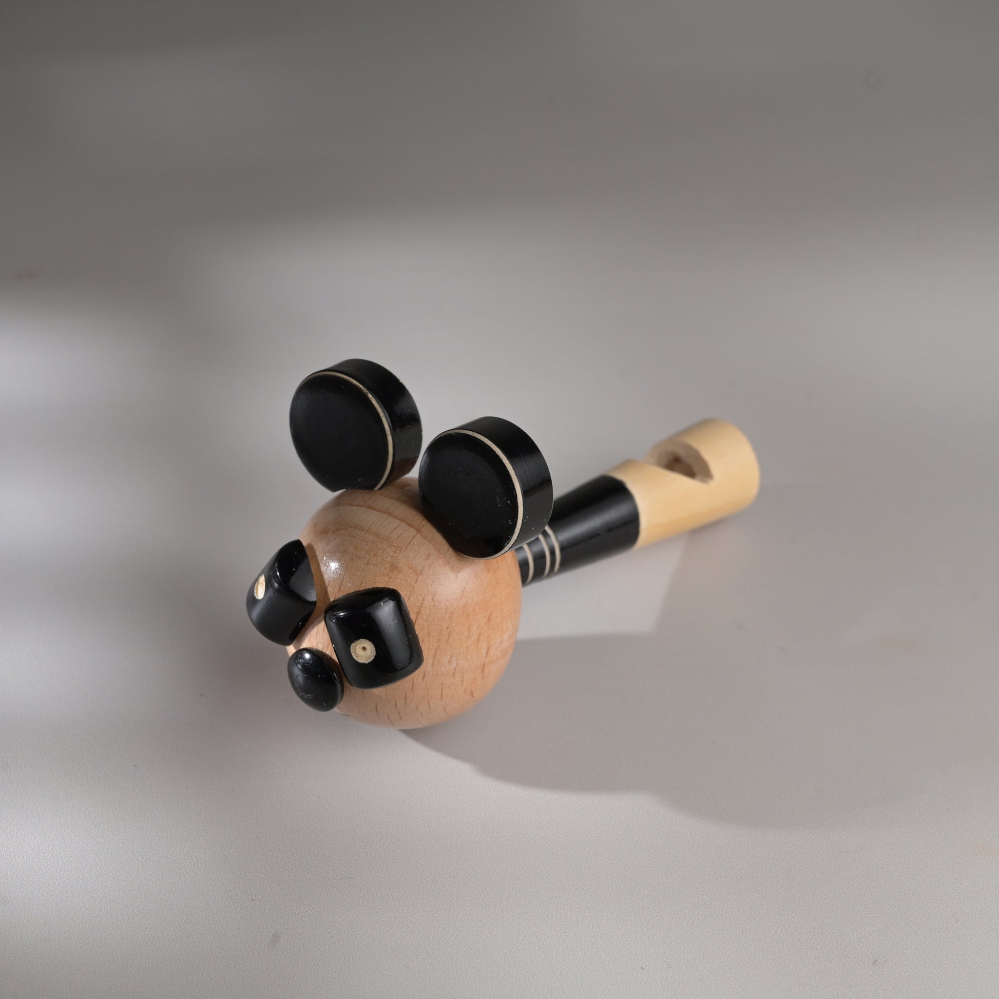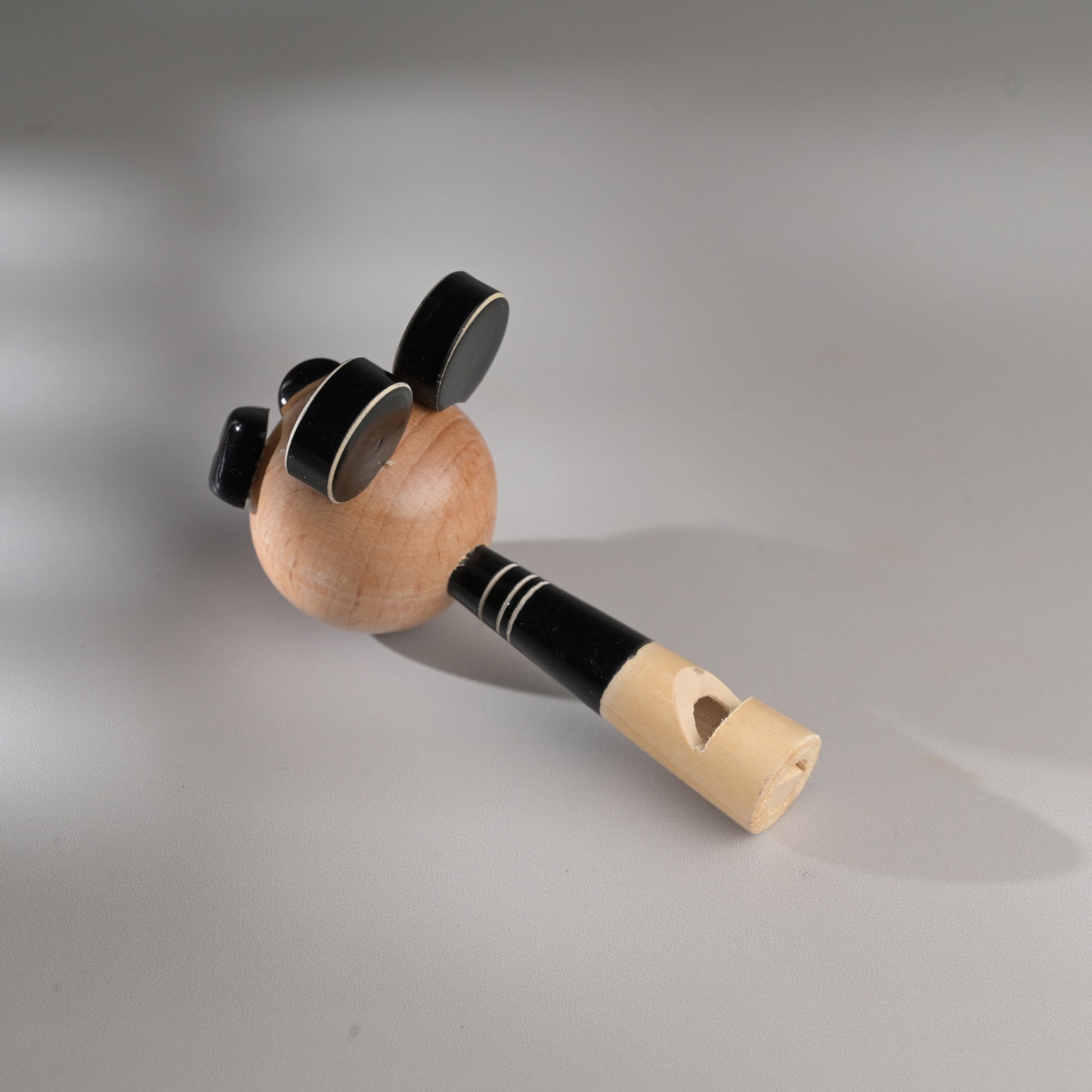 Each piece has been pain stakingly hand-crafted by artisans from Channapatna using the traditional lacquer ware turning technique. The colours used are traditional non-toxic vegetable colours. Any irregularities on the wood are part of its natural beauty. The animal heads are made of beechwood while the whistle body is made of wrightia tinctoria, or 'hale-mara'. Not suitable for kids below 3 years of age.
