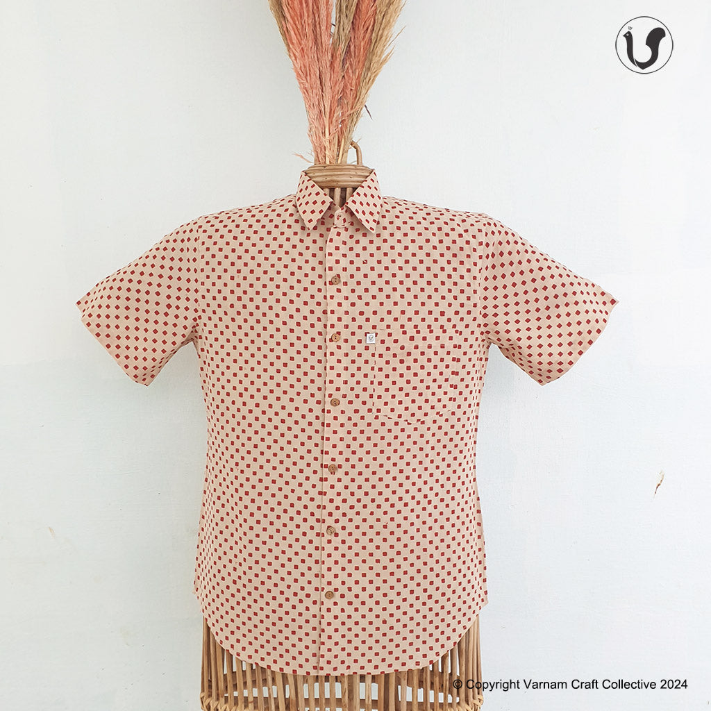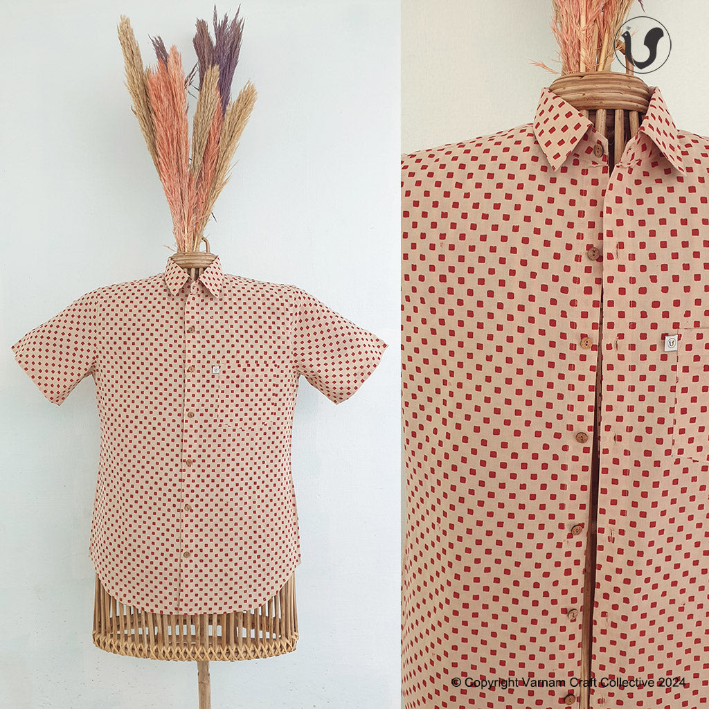 This uber soft, mulmul cotton shirt is a contemporary take on the traditional hand block printing craft of Bagru, Rajasthan.