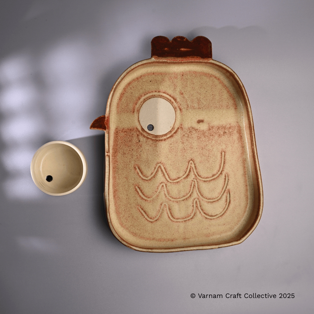 Who said platters can’t have personalities ? Our Snugglewala Chip & Dip Platter comes with two cute little dip bowls that double up as their eyes, making every character look wide-eyed, animated and absolutely whimsical.