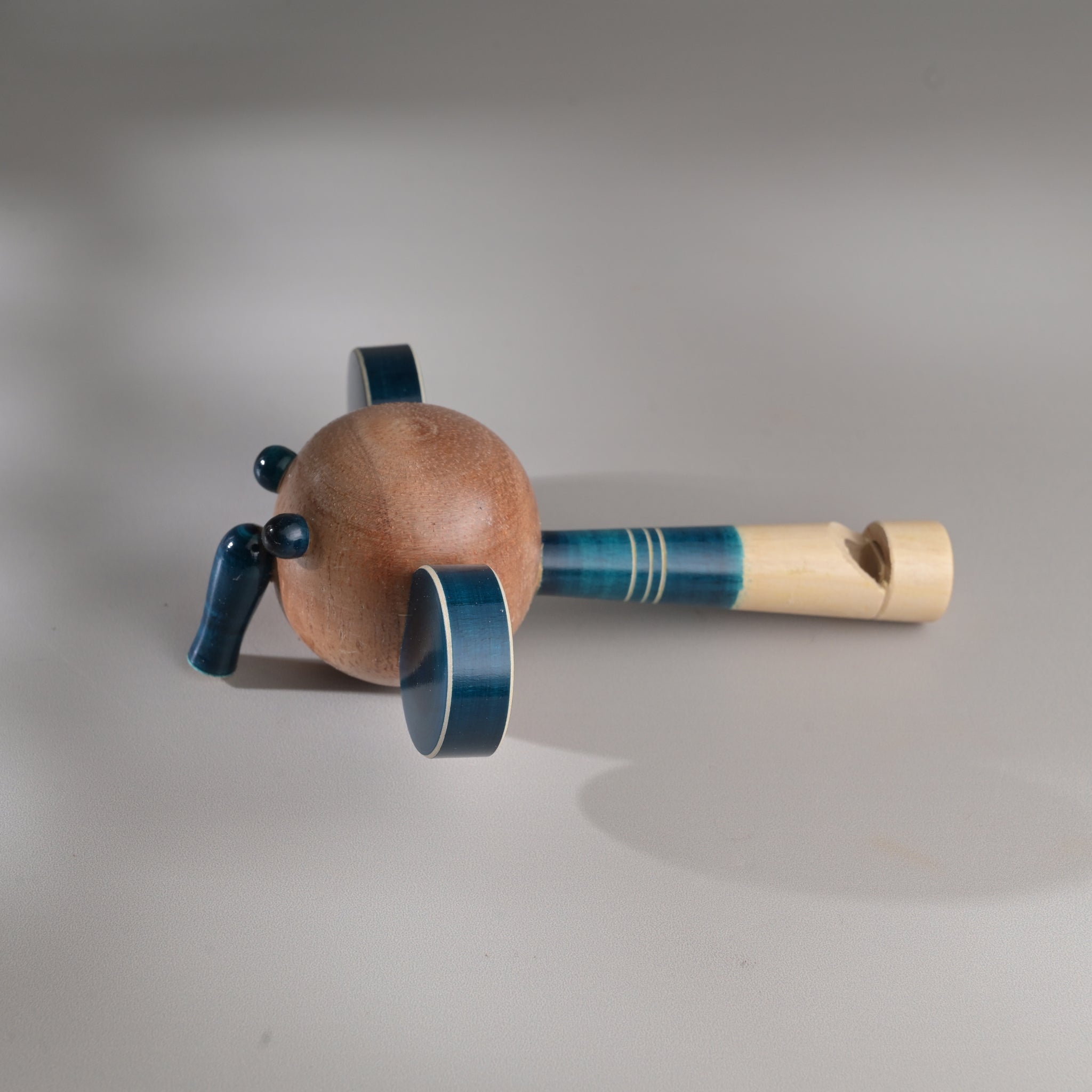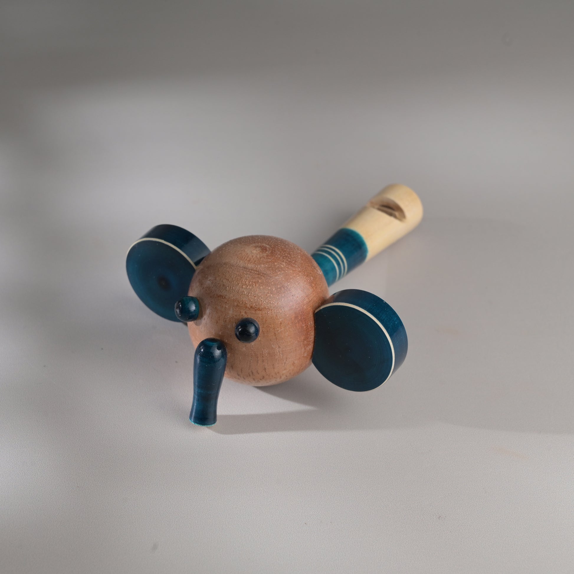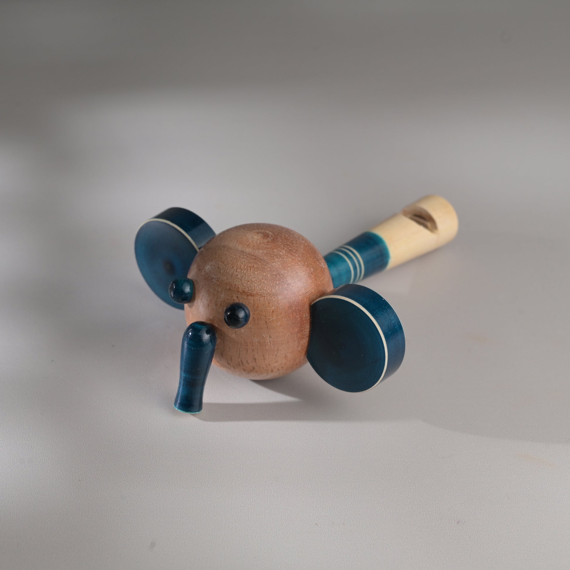 Each piece has been pain stakingly hand-crafted by artisans from Channapatna using the traditional lacquer ware turning technique. The colours used are traditional non-toxic vegetable colours. Any irregularities on the wood are part of its natural beauty. The animal heads are made of beechwood while the whistle body is made of wrightia tinctoria, or 'hale-mara'. Not suitable for kids below 3 years of age.