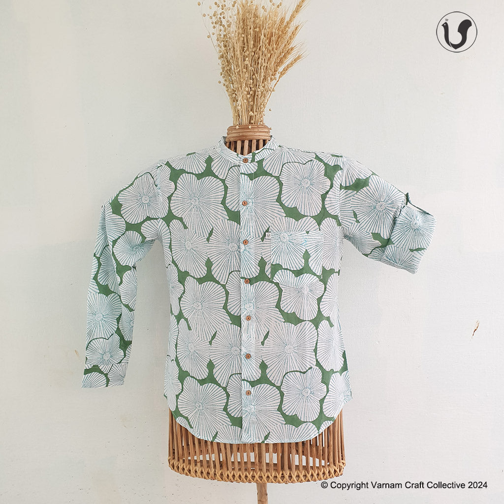 This uber soft, mulmul cotton shirt is a contemporary take on the traditional hand block printing craft of Sanganer, Jaipur. The prints have been custom made using azo-free dyes.