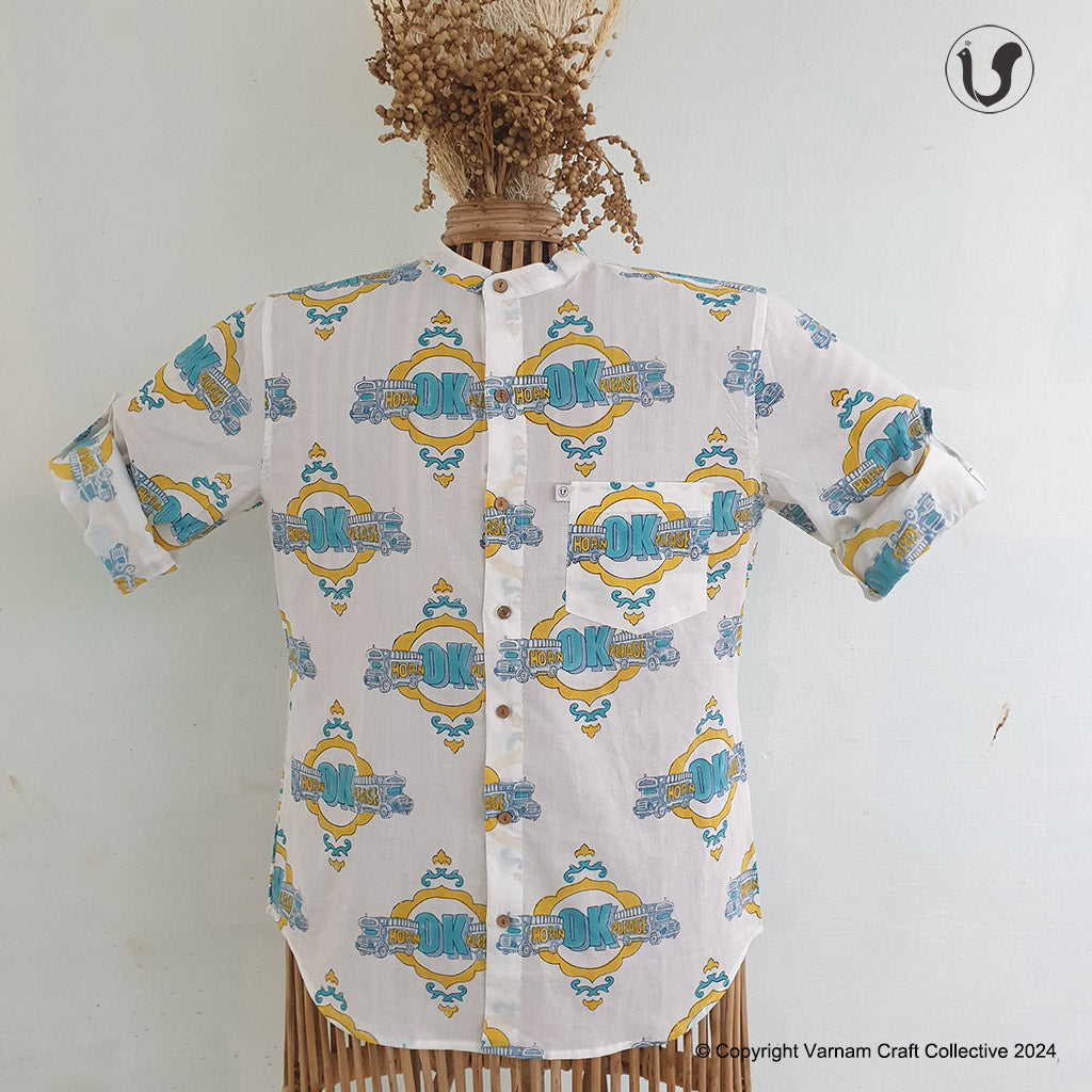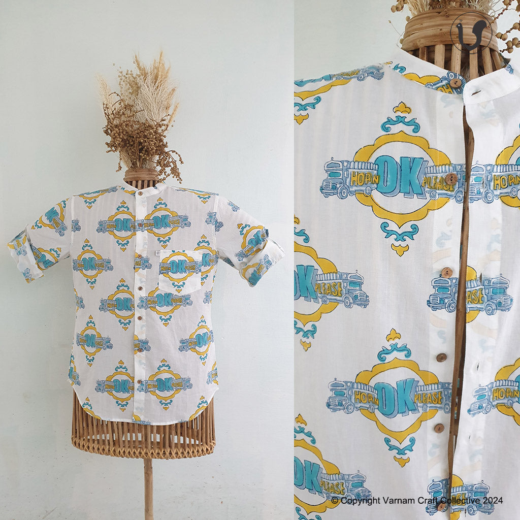 This uber soft, mulmul cotton shirt is a contemporary take on the traditional hand block printing craft of Sanganer, Jaipur. The prints have been custom made using azo-free dyes.