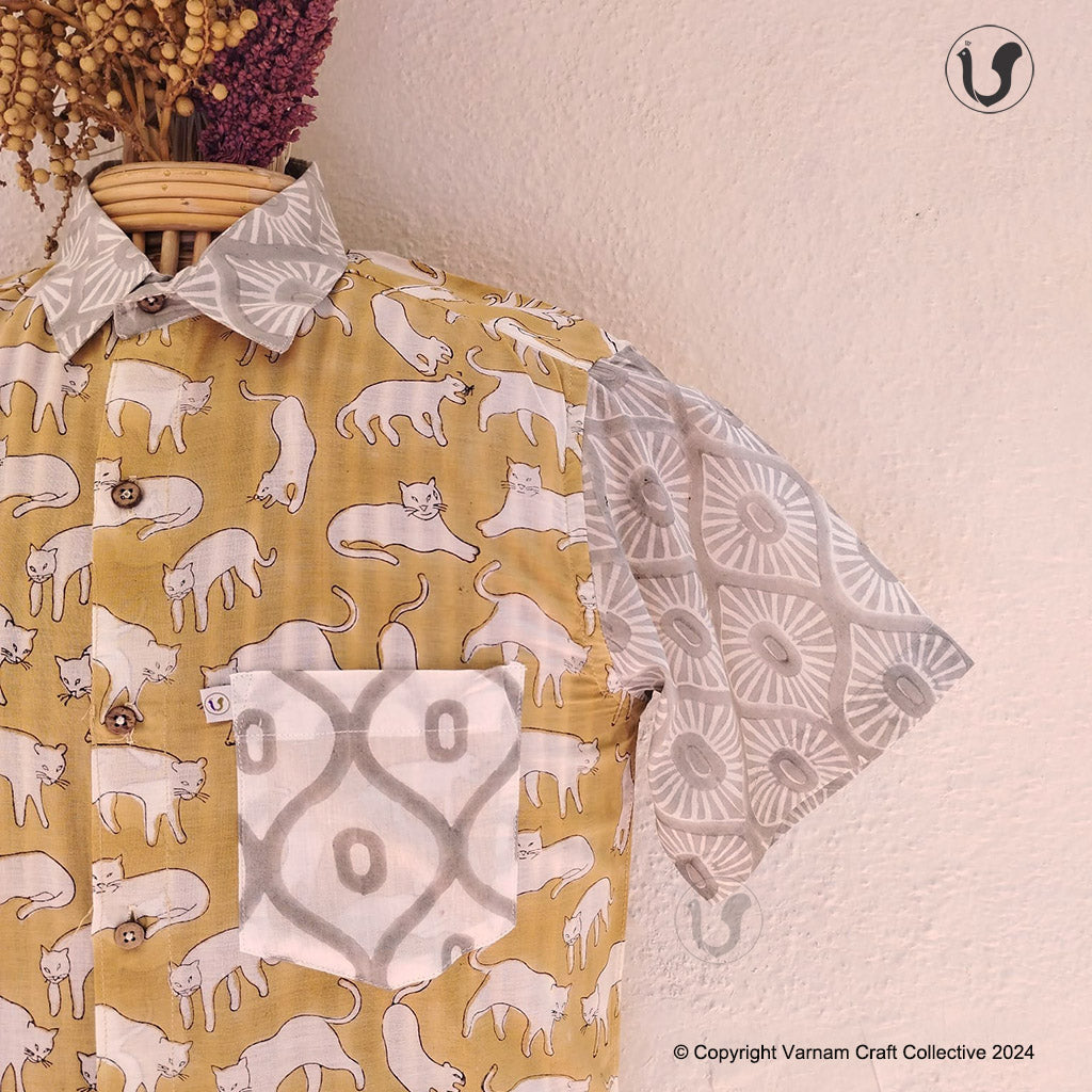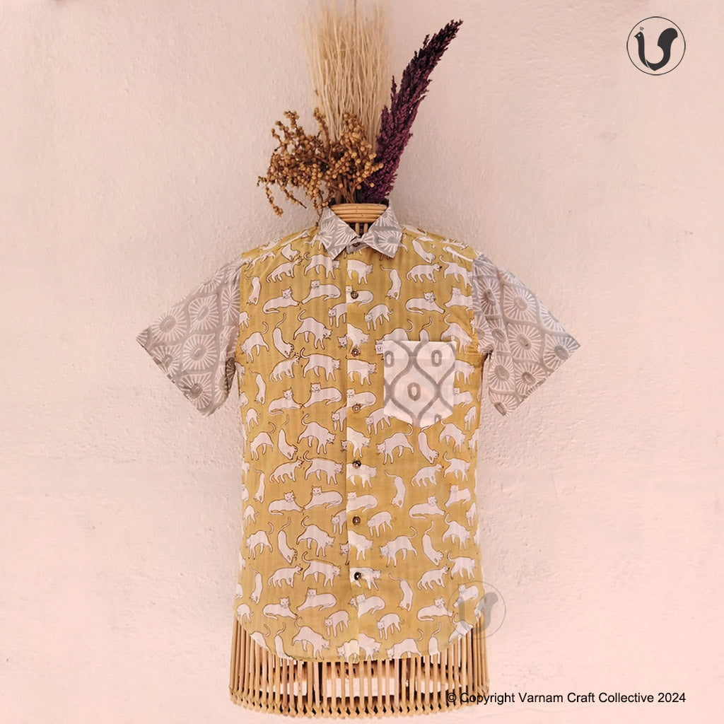 This uber soft, mulmul cotton shirt is a contemporary take on the traditional hand block printing craft of Sanganer, Jaipur. The prints have been custom made using azo-free dyes.