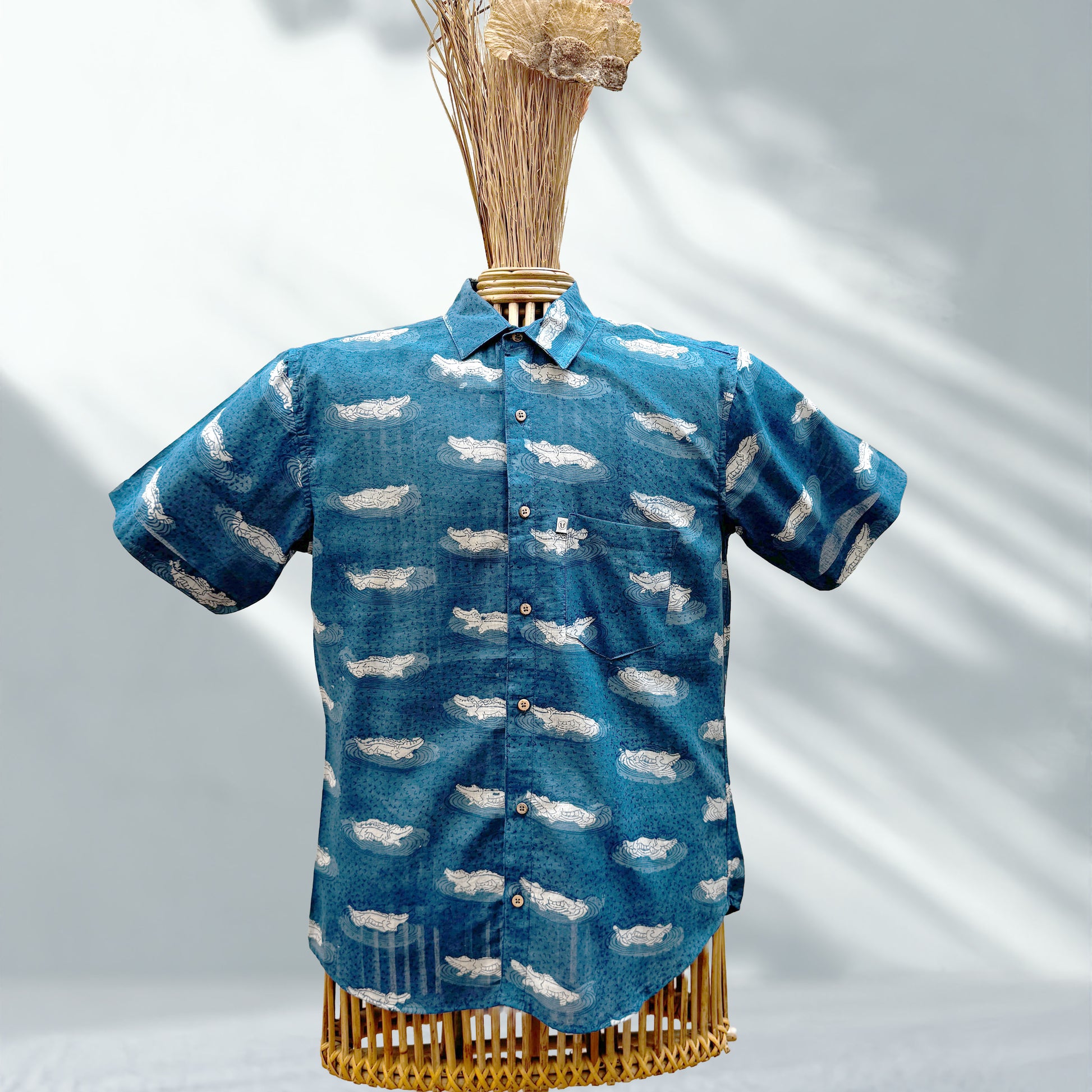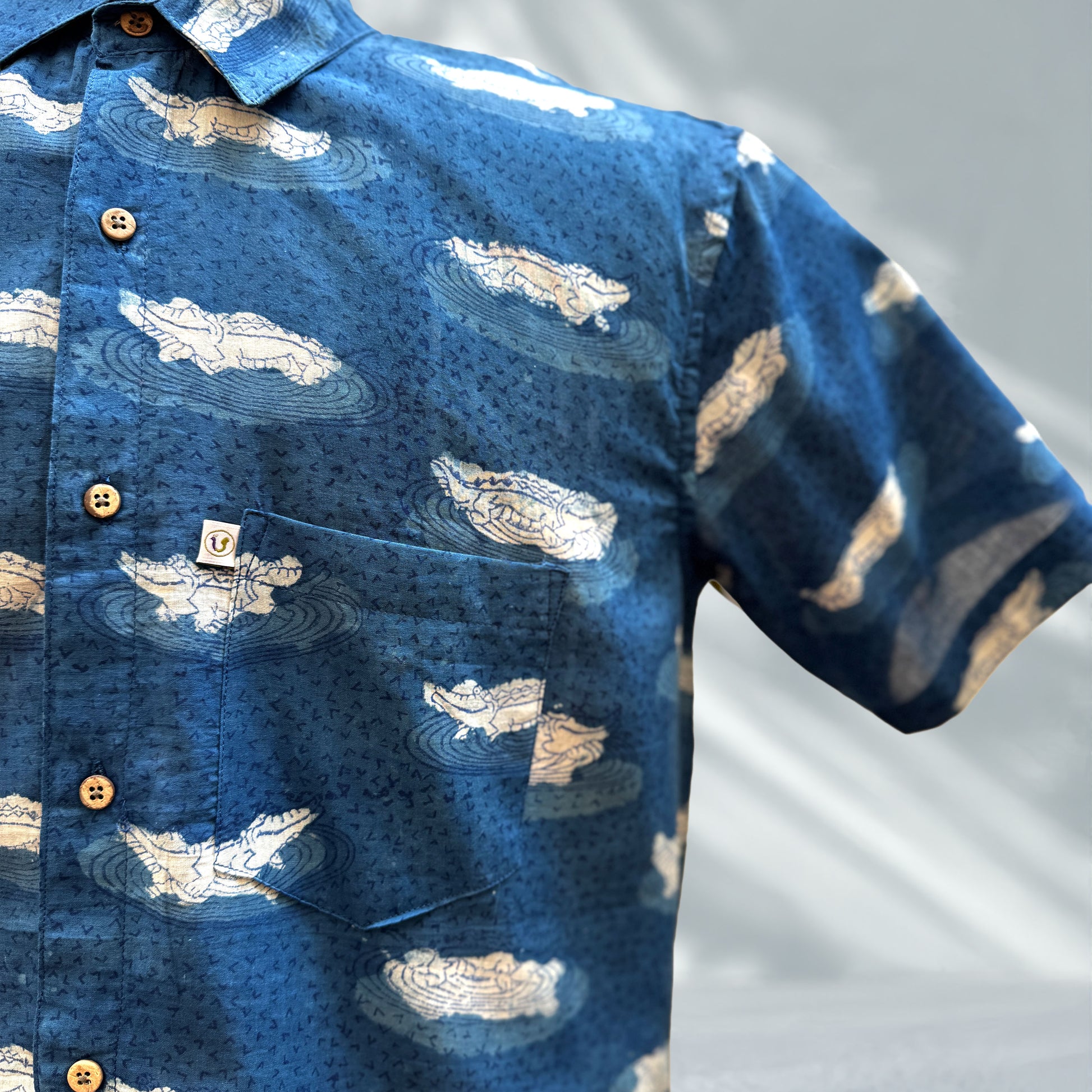 This uber soft, mulmul cotton shirt is a contemporary take on the hand block printing craft of Vanaspati, Jaipur using indigo dye.