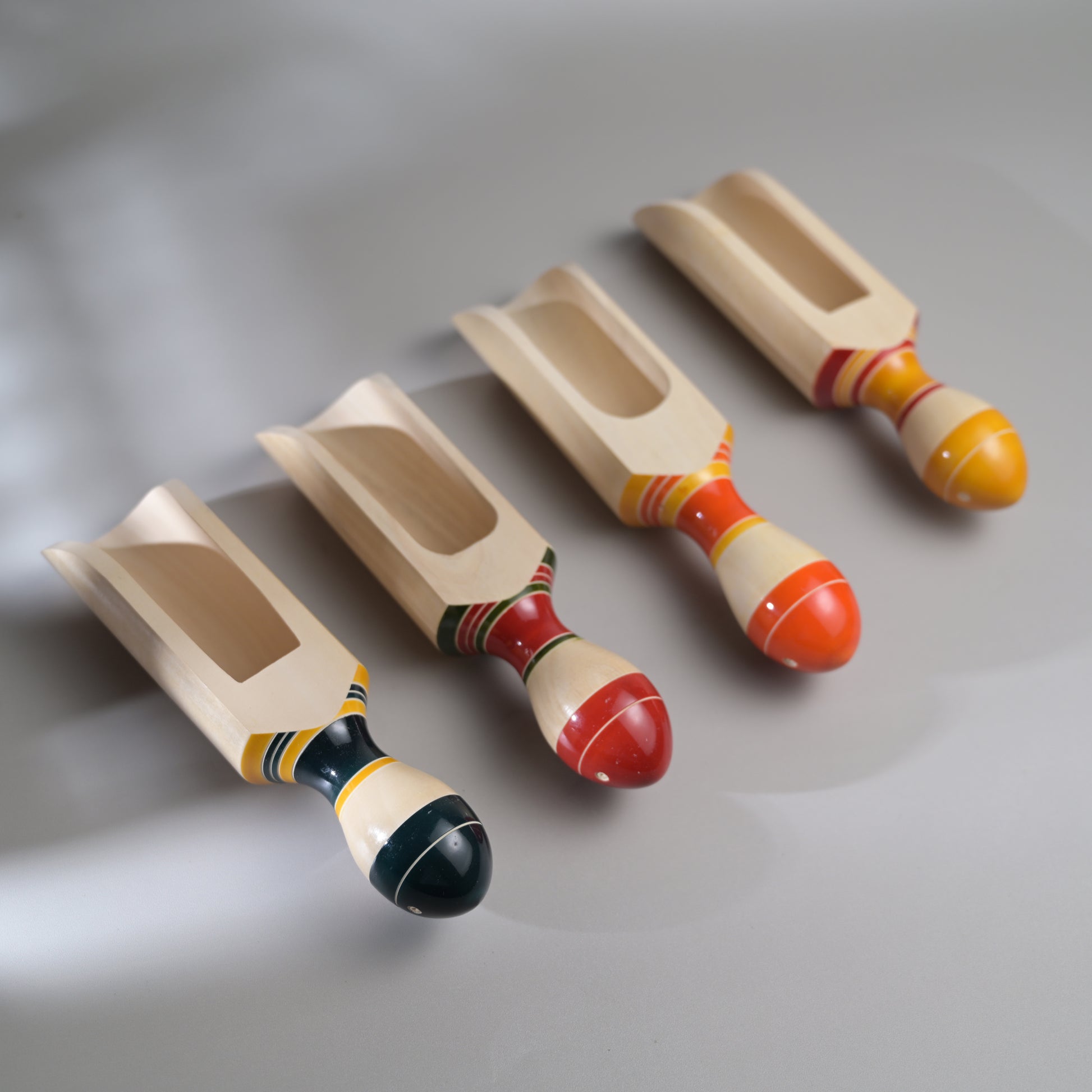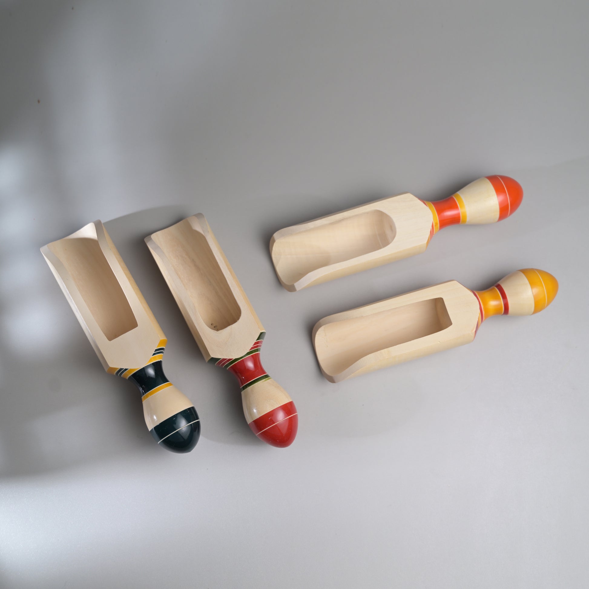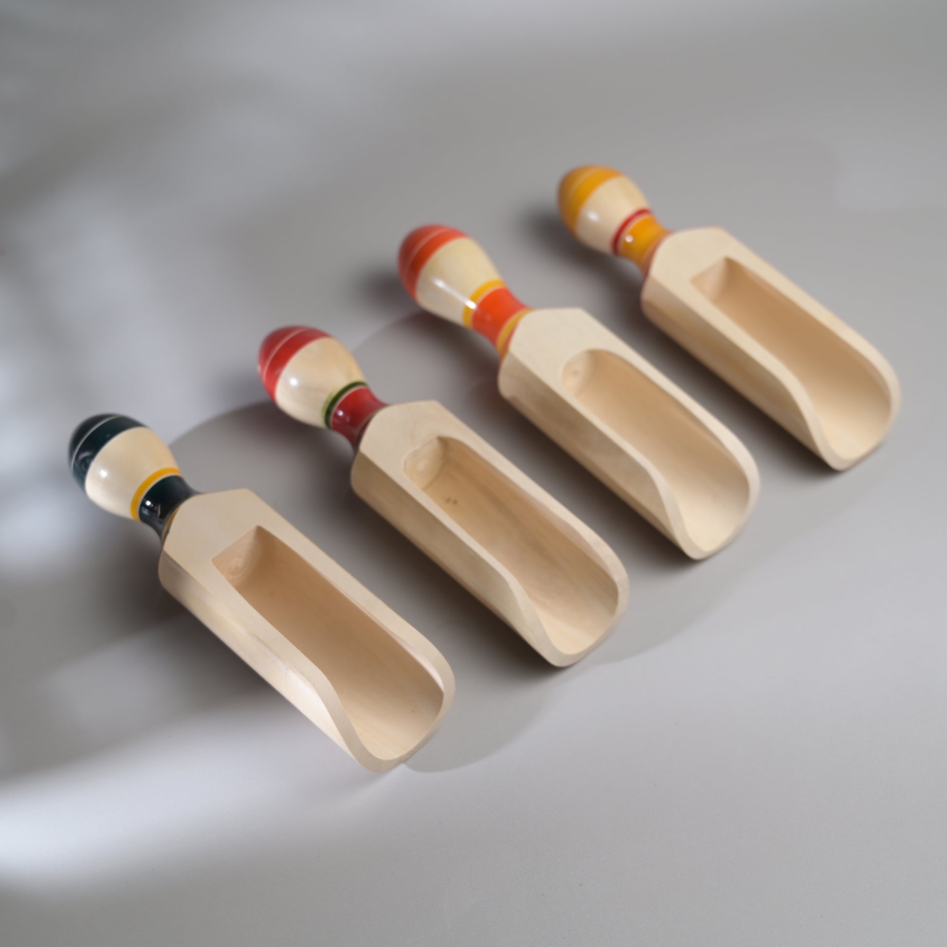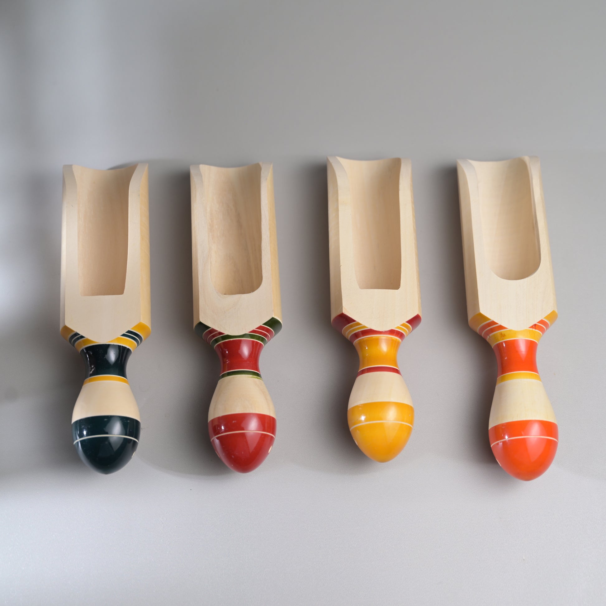 Inspired from our matsya or fish series of rattles, these wooden scoops are perfect for rice, flour or grains.These are made from sustainable and locally available wood called the wrightia tinctoria which is a medicinal plant. Each piece has been pain stakingly hand-crafted by our artisans from Channapatna. There is no polish and the wood is completely natural. Any irregularities on the wood are part of its natural beauty.