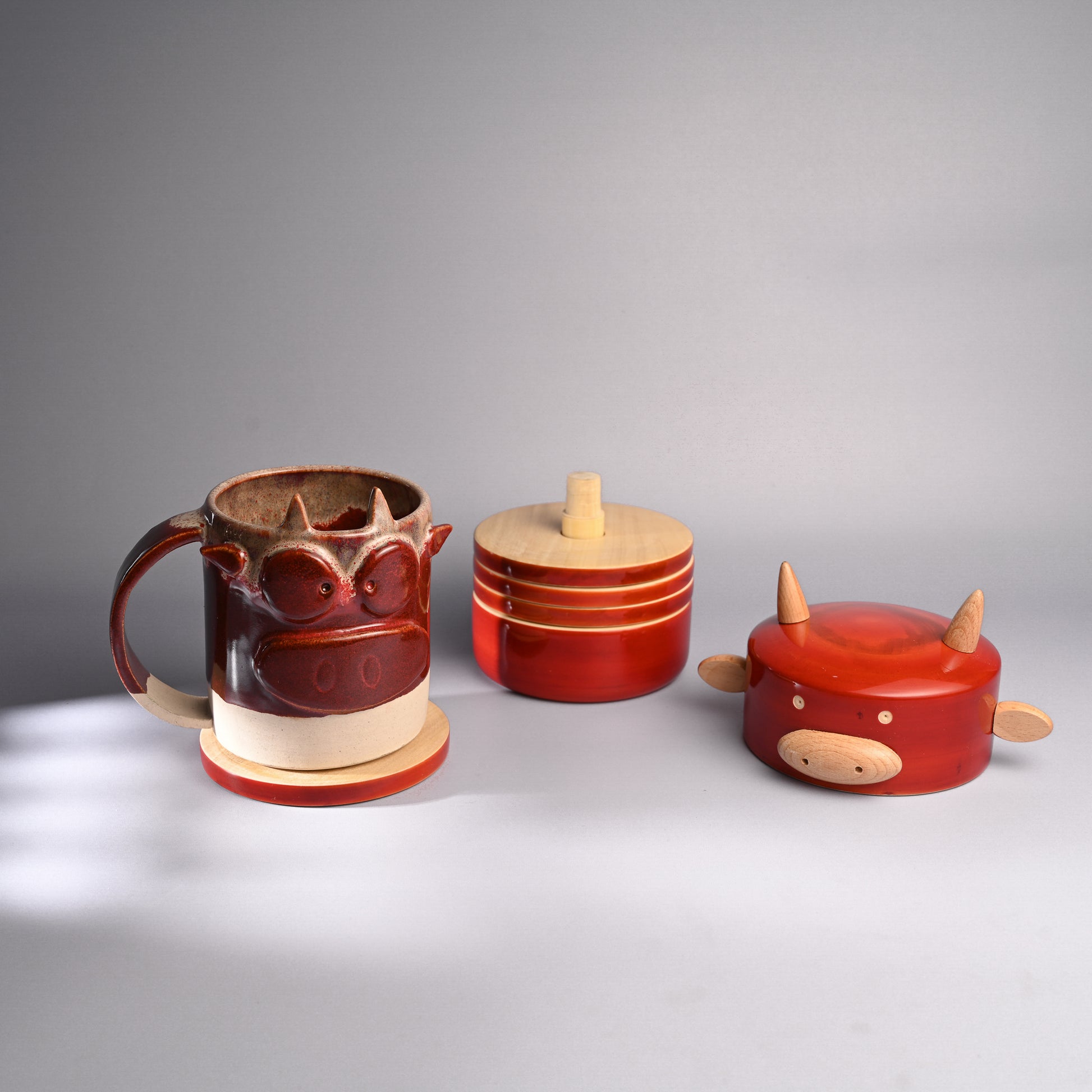 Each piece has been pain stakingly hand-crafted by artisans from Channapatna using the traditional lacquer ware turning technique. The colours used are natural and non-toxic. The wood used for all channapatna lac-ware products is completely safe and is 100% eco-friendly. Any irregularities on the wood are part of its natural beauty.