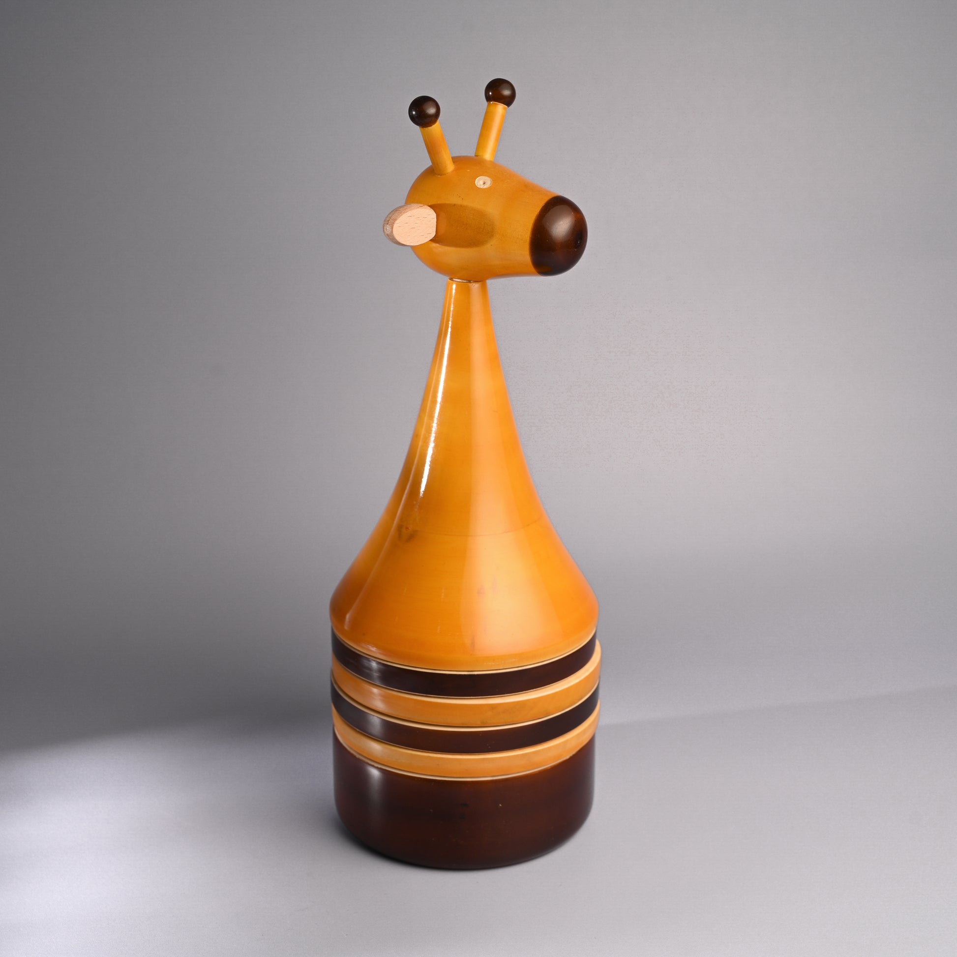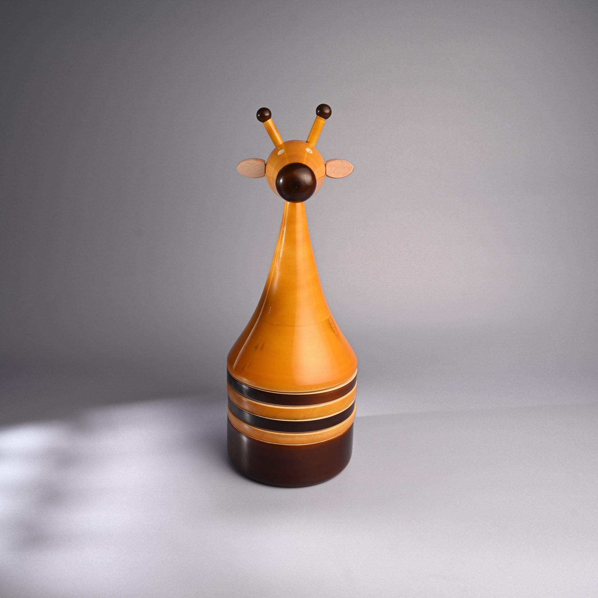 Each piece has been pain stakingly hand-crafted by artisans from Channapatna using the traditional lacquer ware turning technique. The colours used are natural and non-toxic. The wood used for all channapatna lac-ware products is completely safe and is 100% eco-friendly. Any irregularities on the wood are part of its natural beauty.