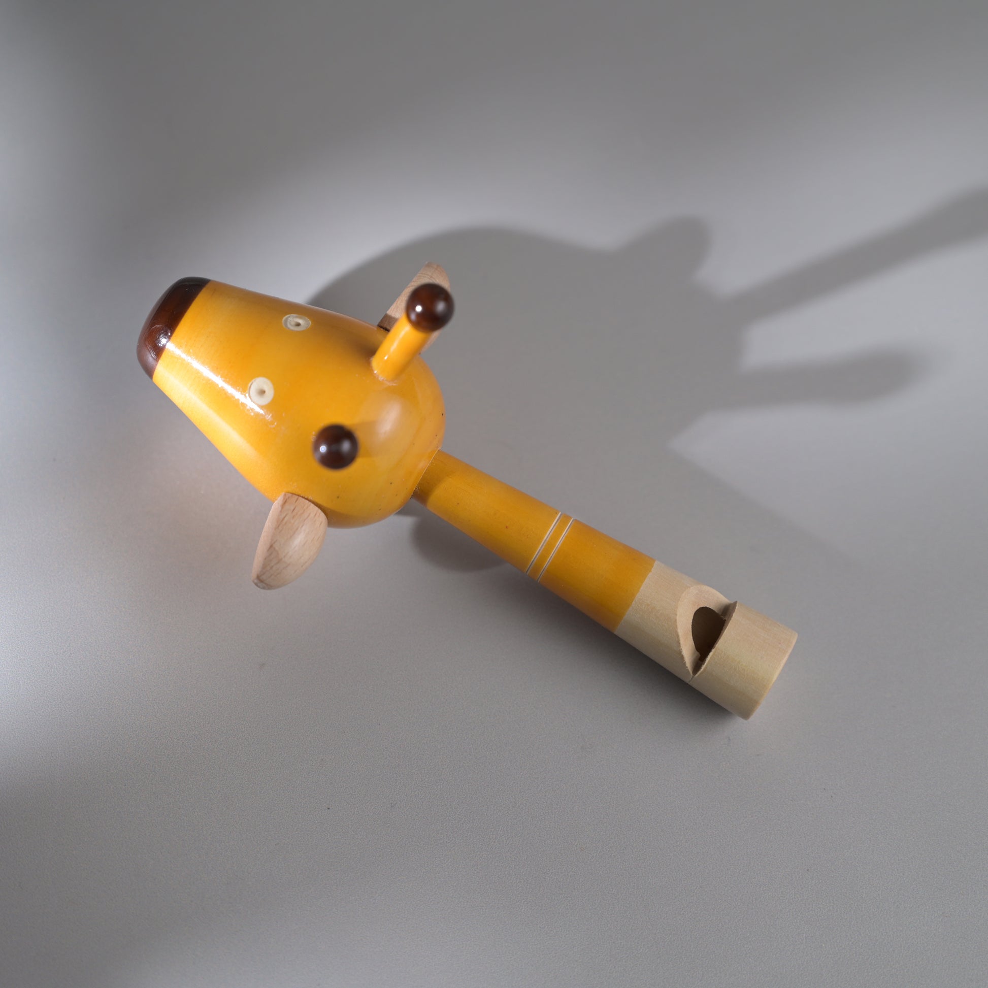 Each piece has been pain stakingly hand-crafted by artisans from Channapatna using the traditional lacquer ware turning technique. The colours used are traditional non-toxic vegetable colours. Any irregularities on the wood are part of its natural beauty. The animal heads are made of beechwood while the whistle body is made of wrightia tinctoria, or 'hale-mara'. Not suitable for kids below 3 years of age.