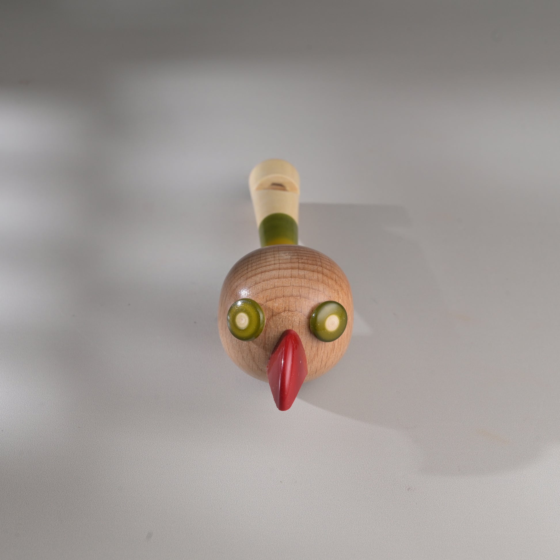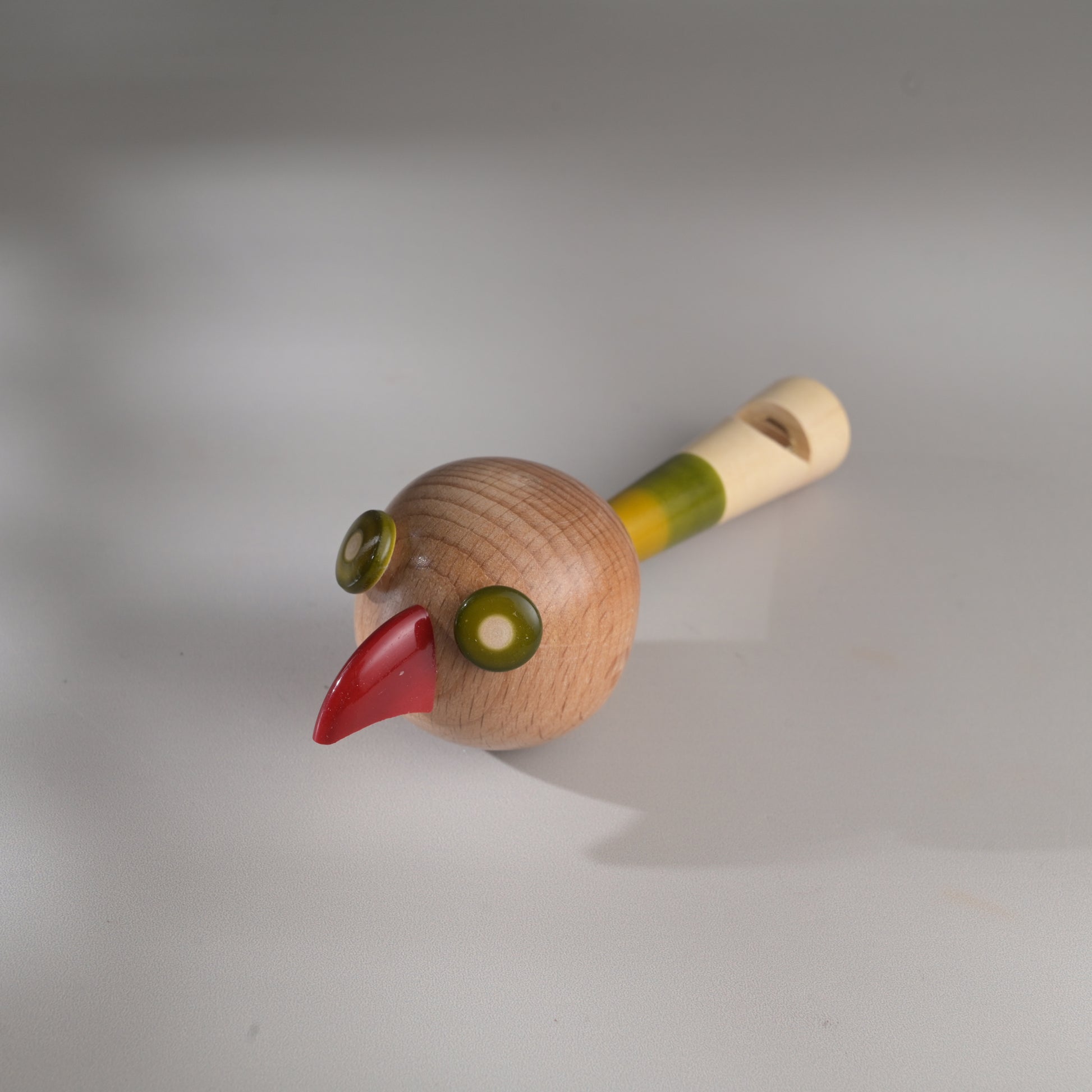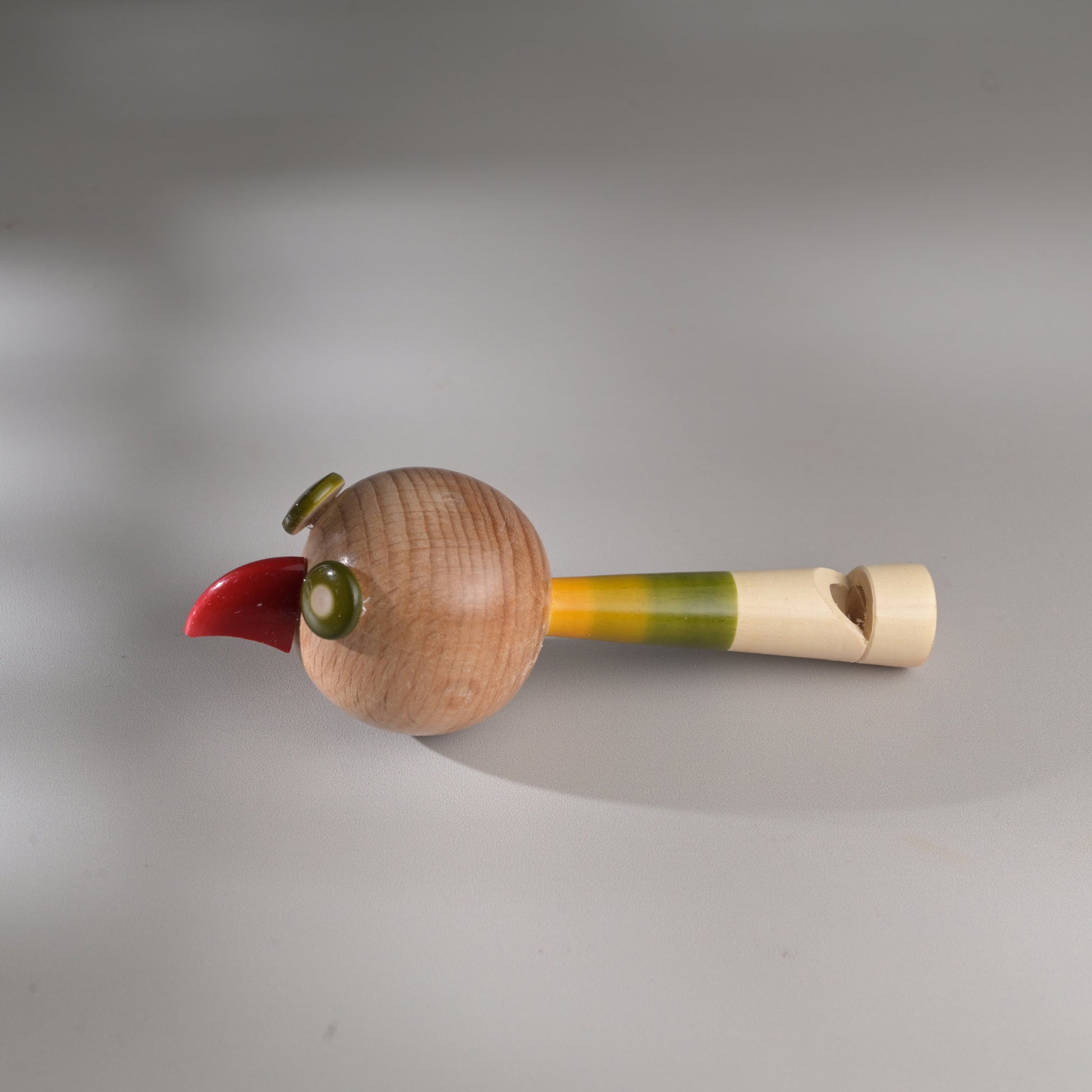 Each piece has been pain stakingly hand-crafted by artisans from Channapatna using the traditional lacquer ware turning technique. The colours used are traditional non-toxic vegetable colours. Any irregularities on the wood are part of its natural beauty. The animal heads are made of beechwood while the whistle body is made of wrightia tinctoria, or 'hale-mara'. Not suitable for kids below 3 years of age.