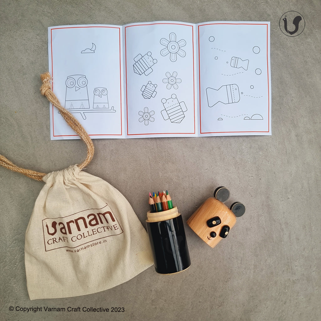 A great gift idea for your little one or also as return gifts for birthday parties, this set contains 12 half colour pencils, sharpener and a mini colouring booklet of our popular toy animals.