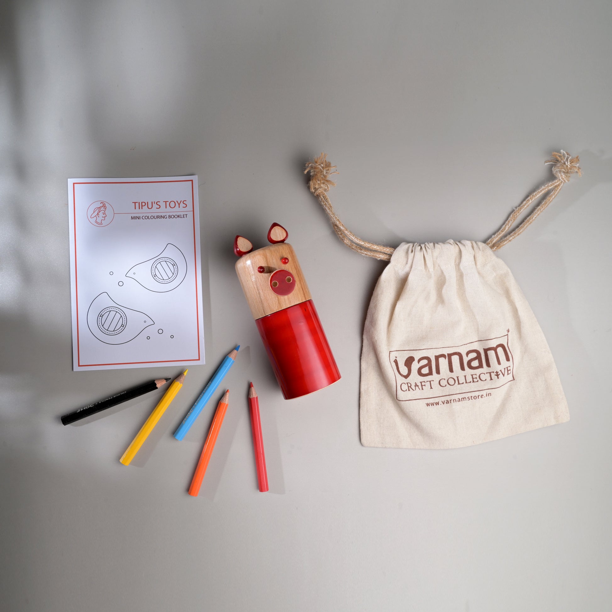 Our popular animal series, the tunti-tuntas (naughty girl-boy in kannada) are available as colour pencil boxes for your littles ones.