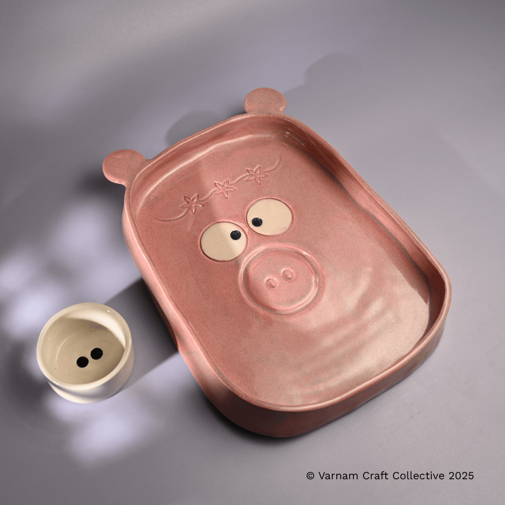 Who said platters can’t have personalities ? Our Snugglewala Chip & Dip Platter comes with two cute little dip bowls that double up as their eyes, making every character look wide-eyed, animated and absolutely whimsical.