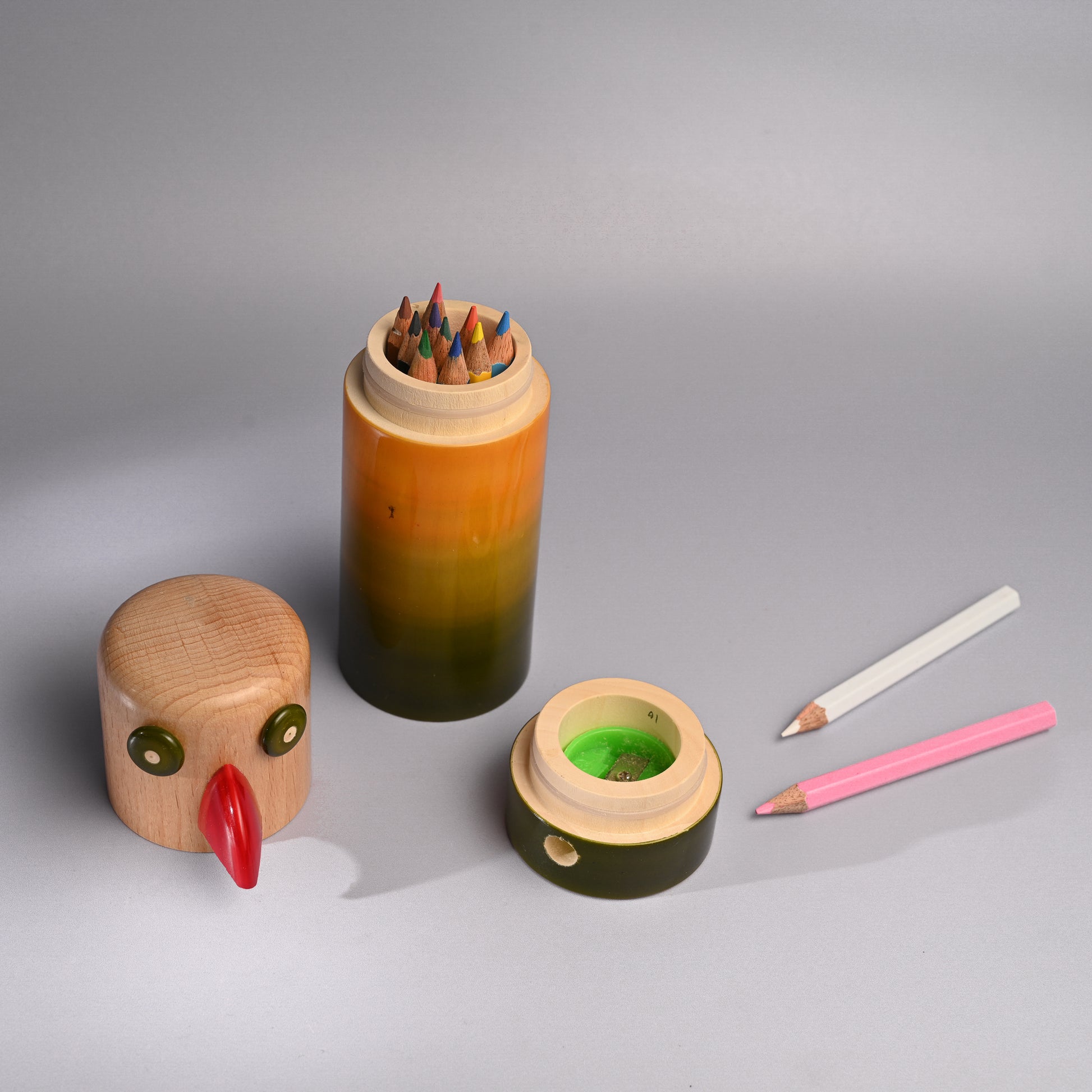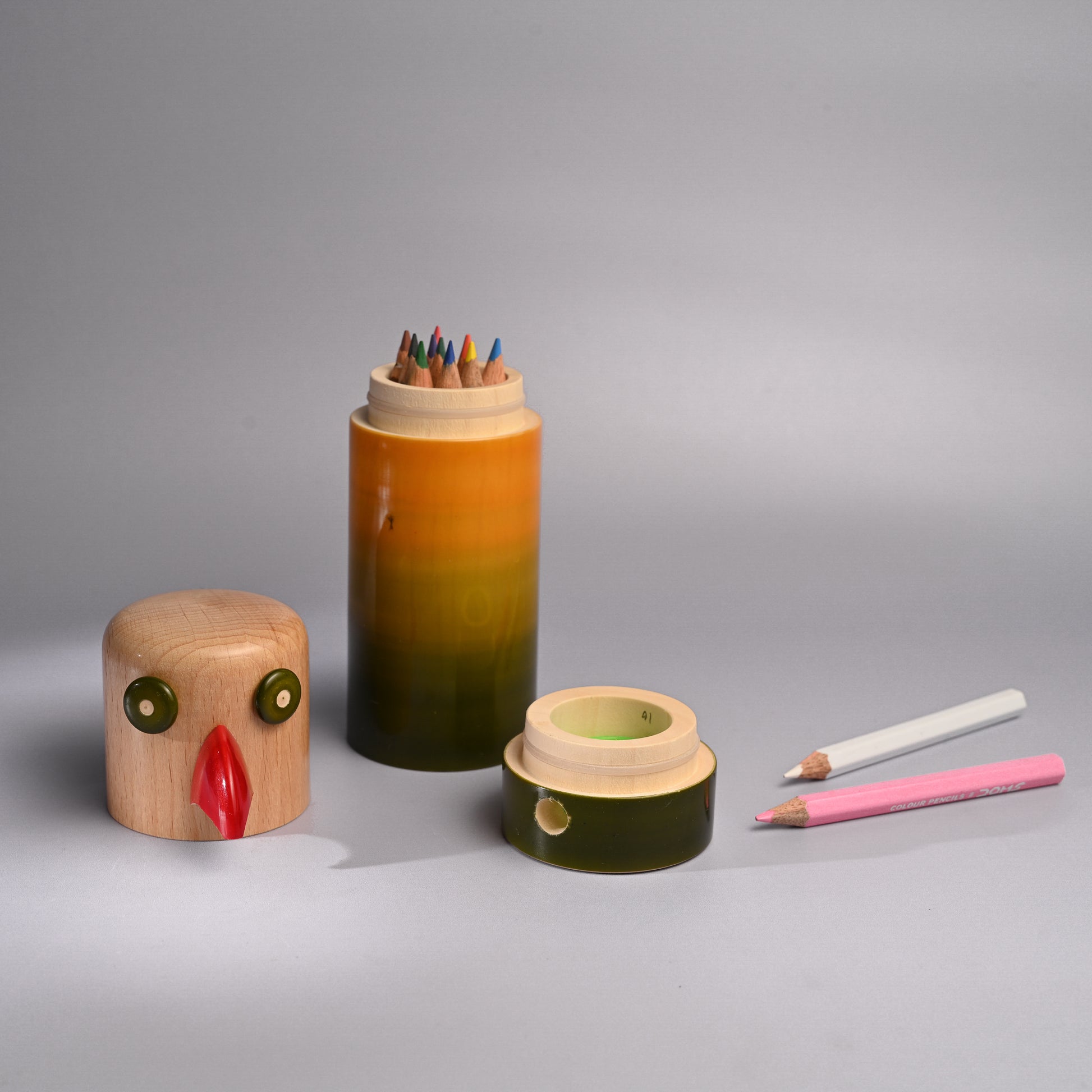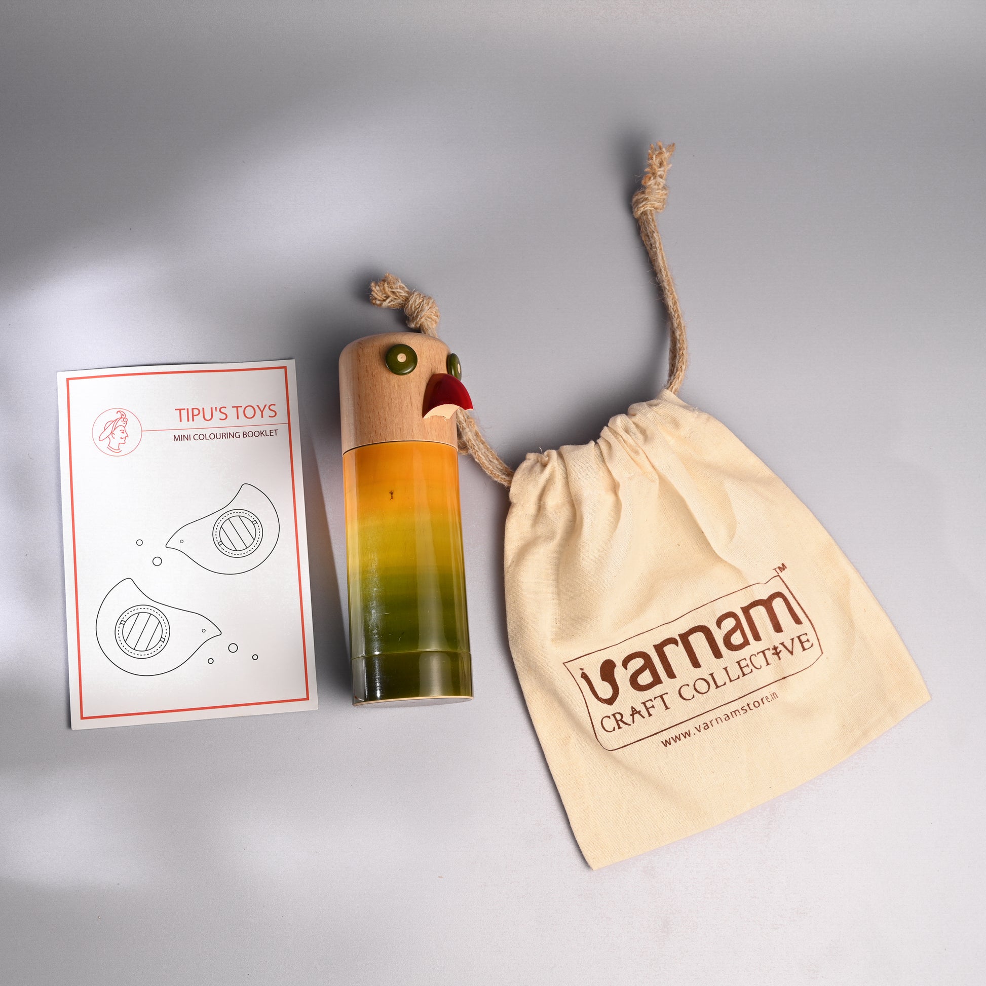 They are made from wrightia-tinctoria using the 200year old toy-craft of lac-turnery. The wood is extremely safe and known for its medicinal properties. The colours used are natural dyes and non-toxic.