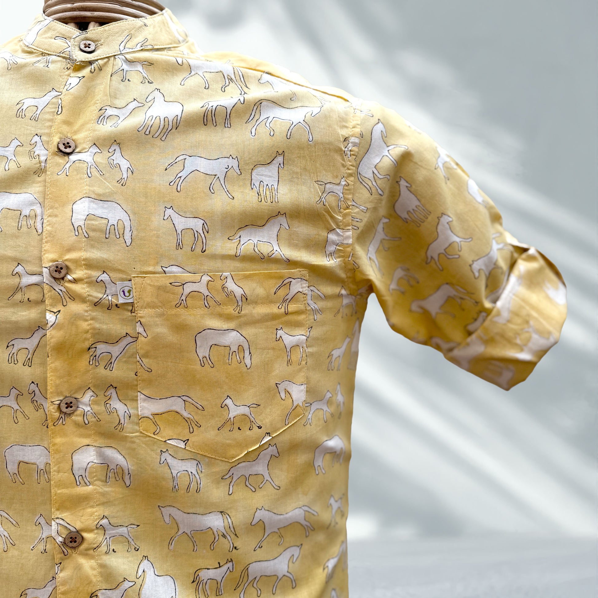 This uber soft, mulmul cotton shirt is a contemporary take on the traditional hand block printing craft of Sanganer, Jaipur. The prints have been custom made using azo-free dyes.
