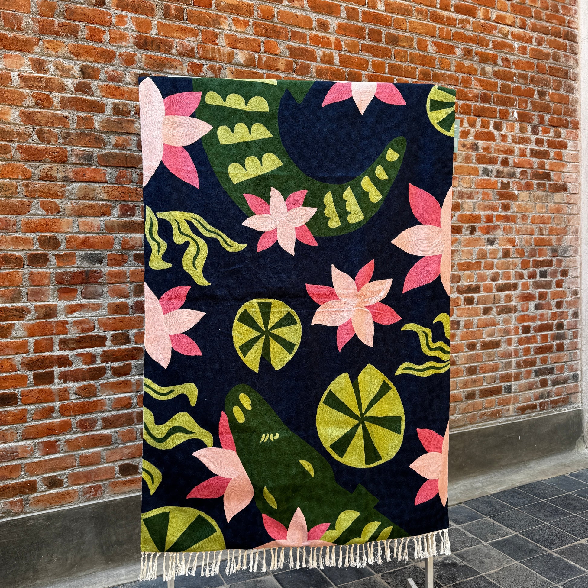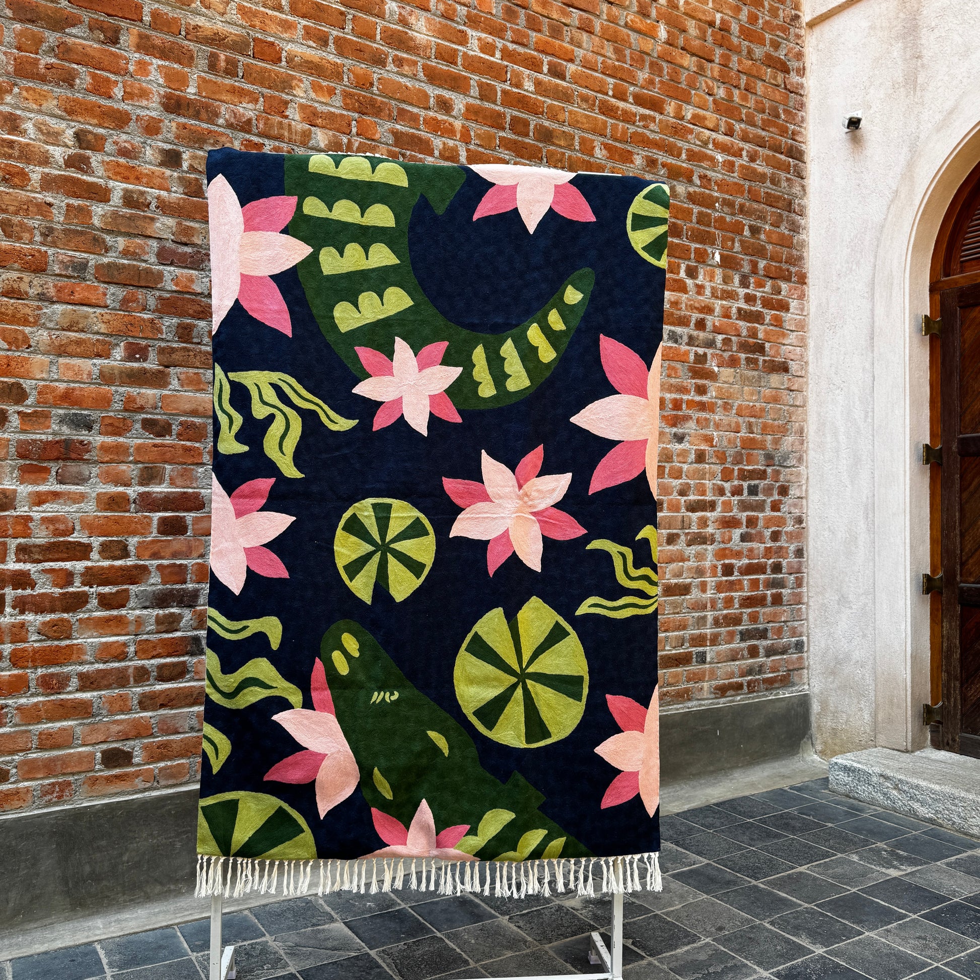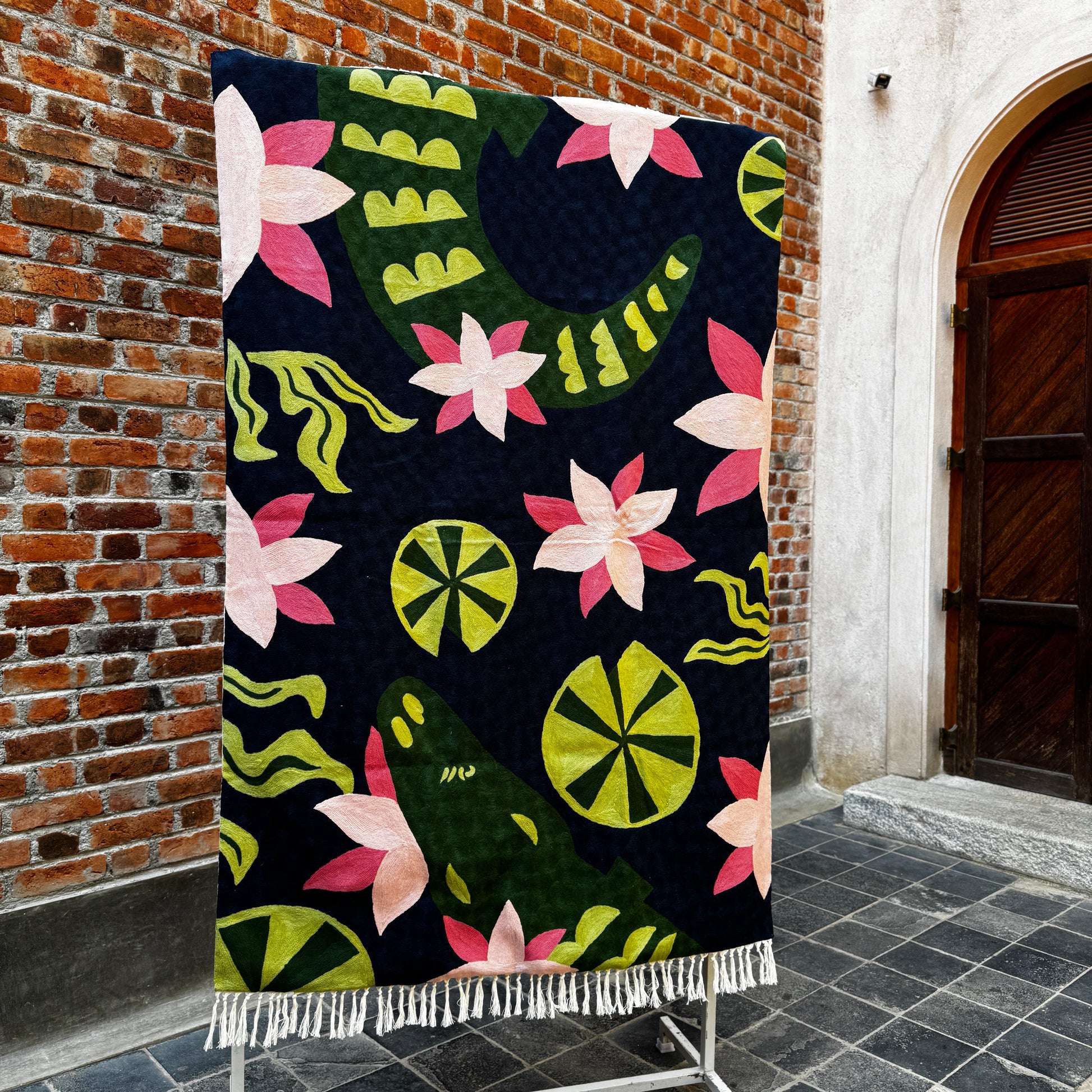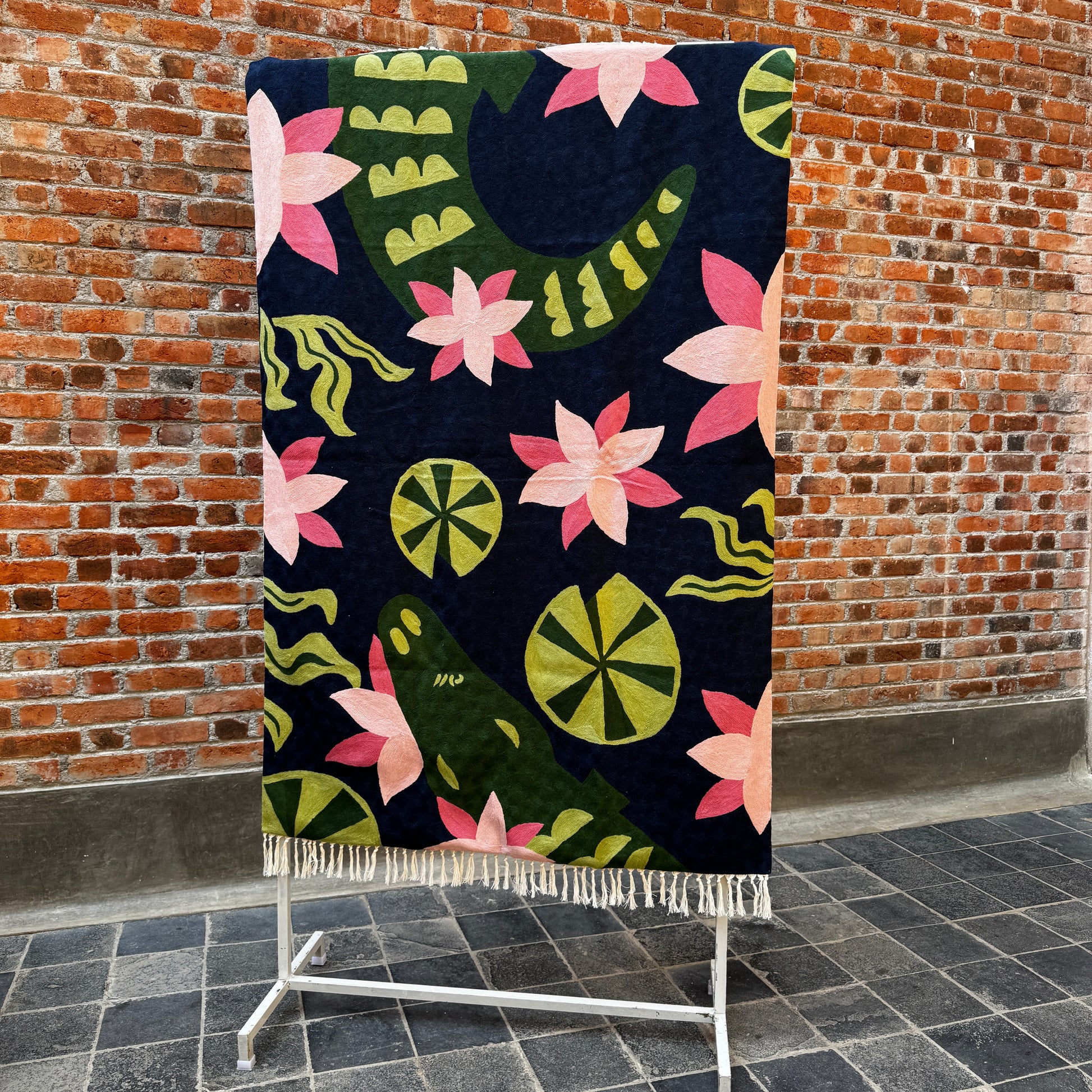 Crewel rugs are special because they sit at the beautiful intersection of art, craft and patience. Hand embrodiered, not woven unlike most rugs, crewel rugs are made by embroidering thick wool yarn onto a cotton base, entirely by hand. Every motif is stitched, not knotted or machine-made.