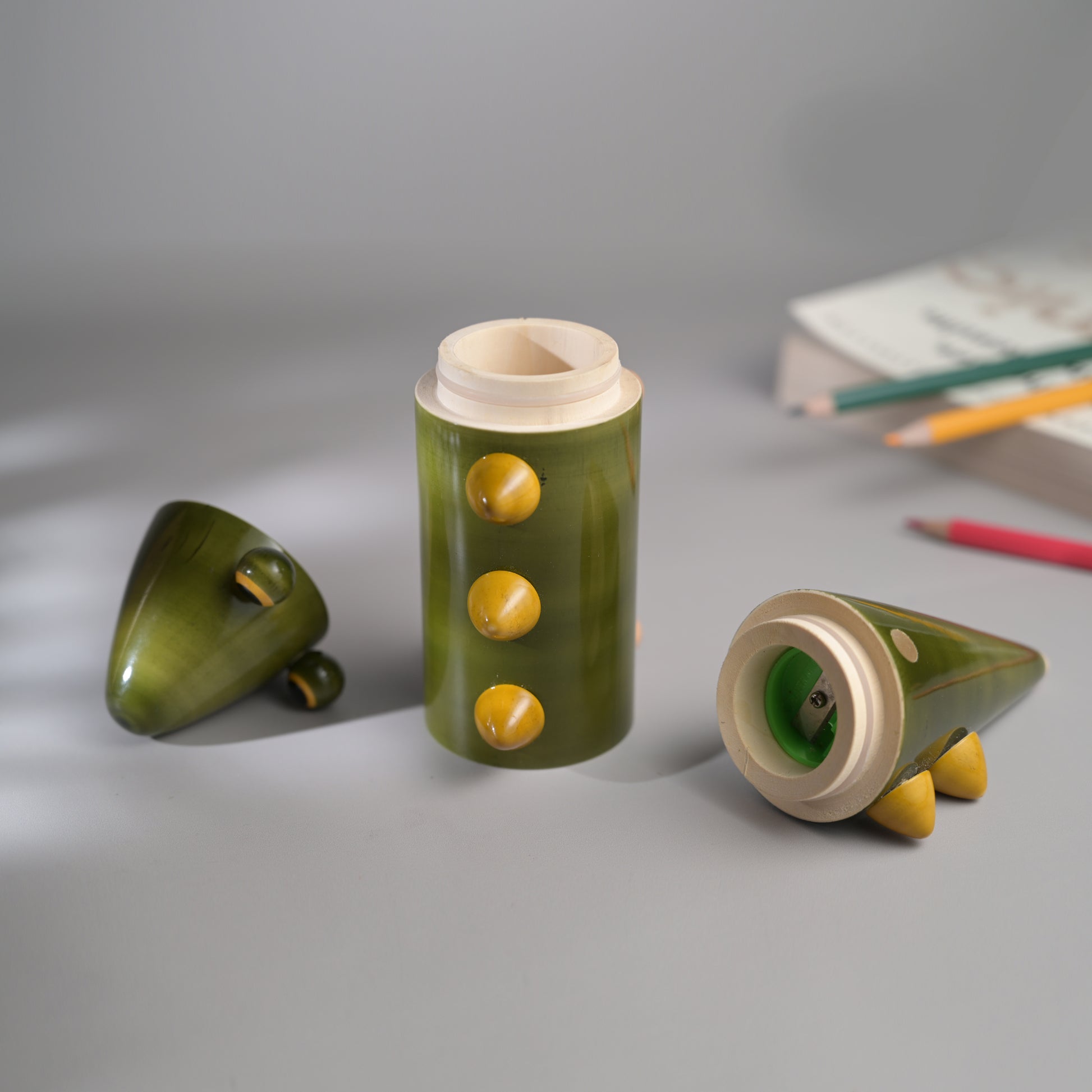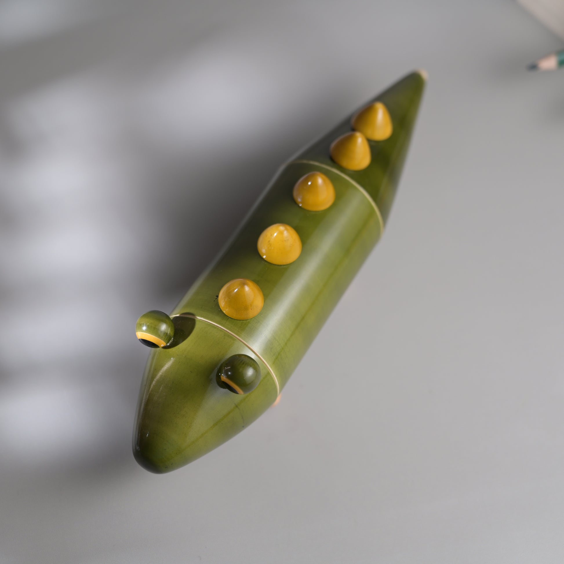 They are made from wrightia-tinctoria using the 200year old toy-craft of lac-turnery. The wood is extremely safe and known for its medicinal properties. The colours used are natural dyes and non-toxic.