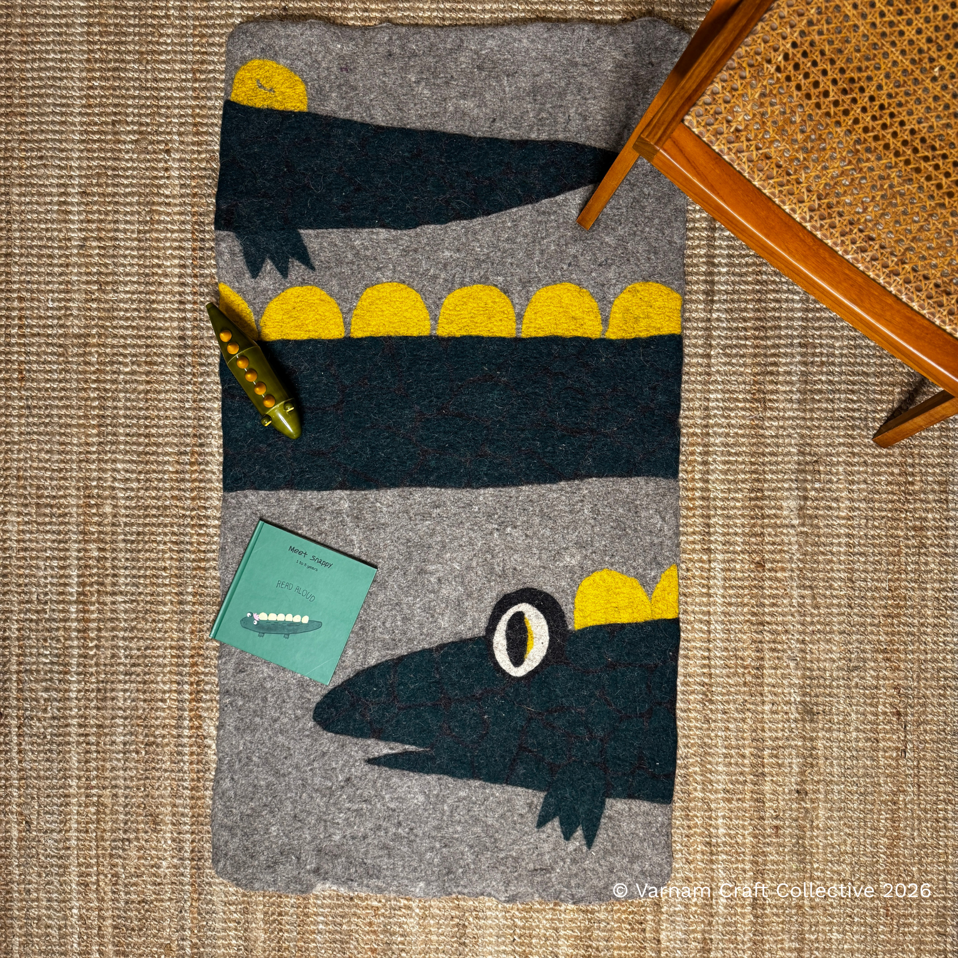 Meet Snappy the Crocodile – She is a gentle riverkeeper who tends lilies instead of snapping,dreaming of floating spas and calm waters.