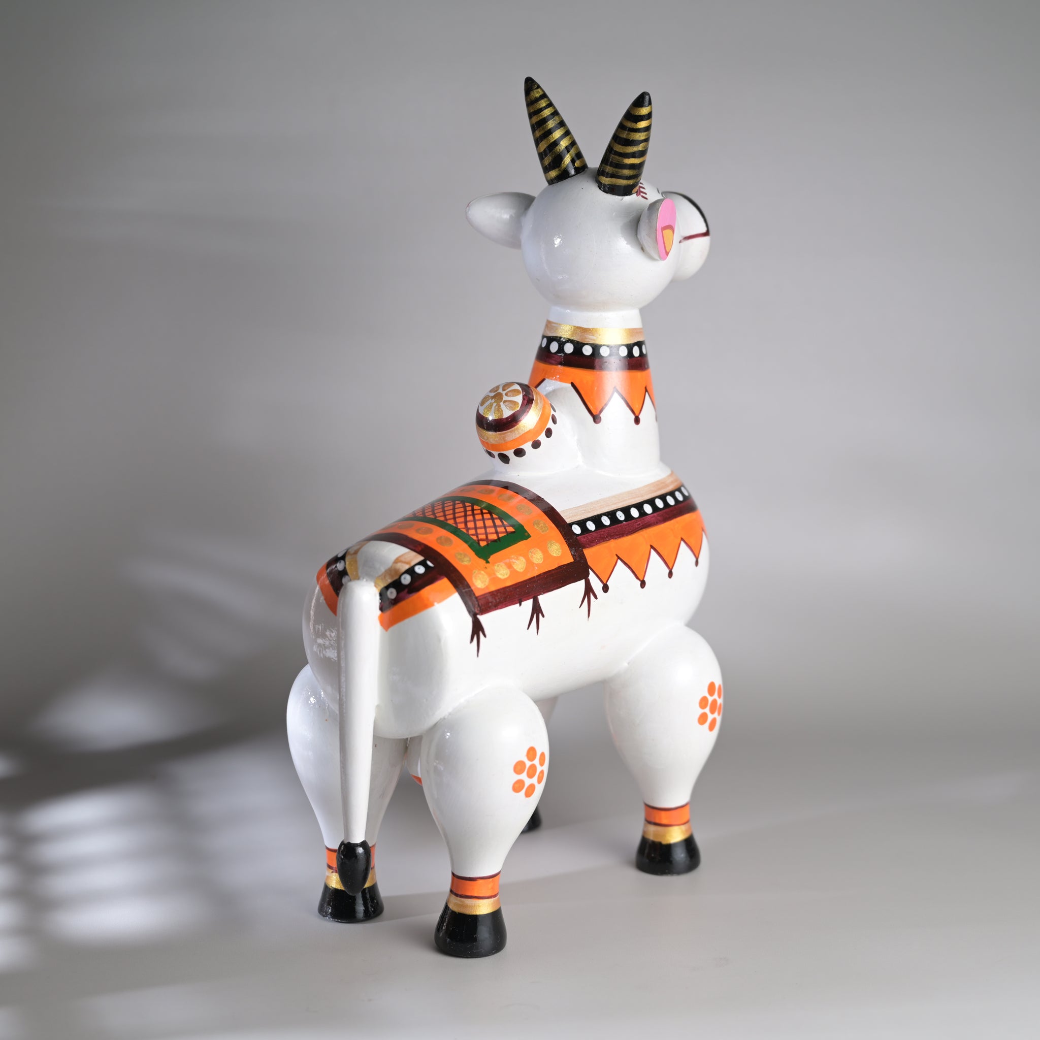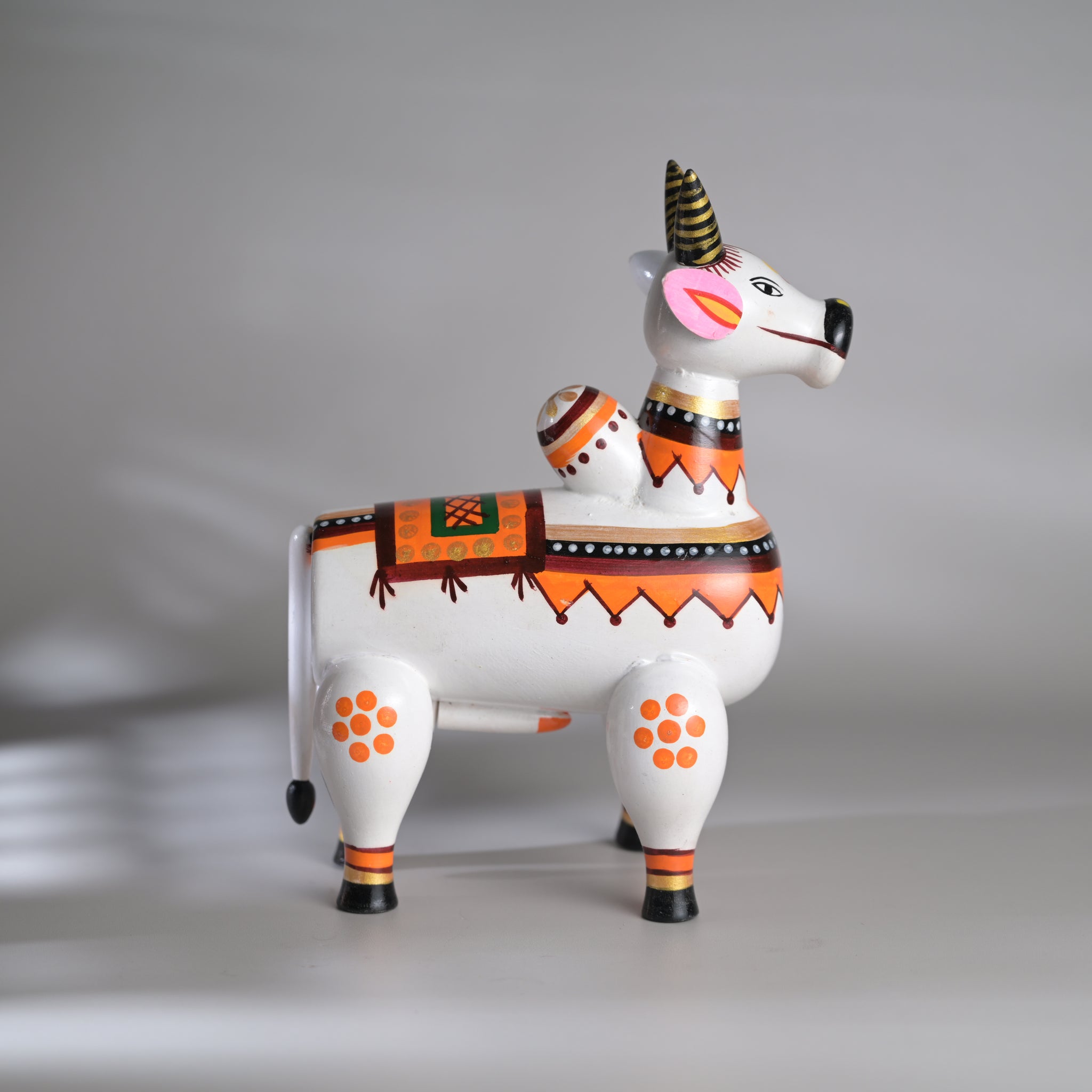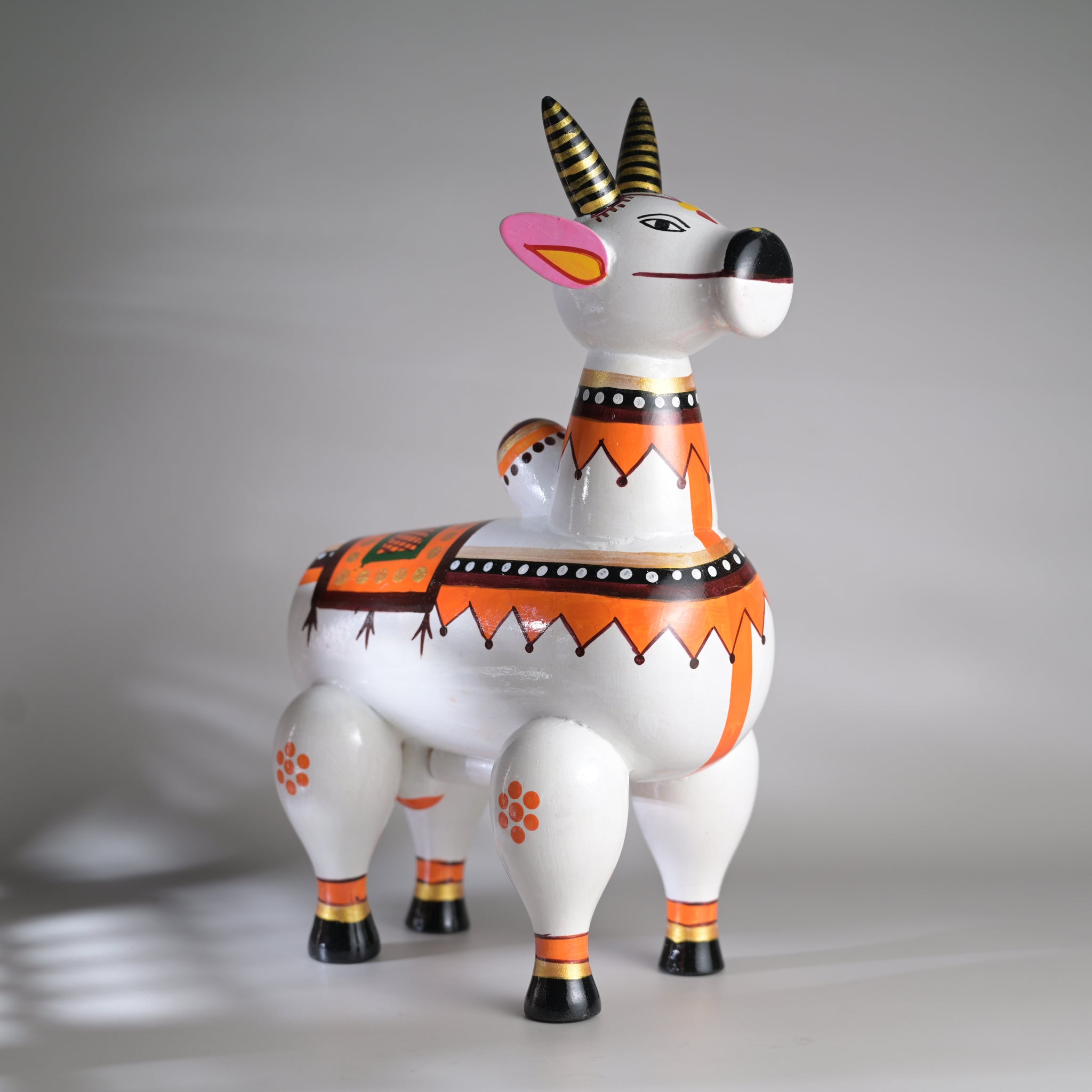 The Basavas or the bulls are the iconic and popular designs amongst the Dasara dolls. This is a part of our initiative to revive the traditional doll stories of Channapatna, Karnataka. Each piece is made of wrightia tinctoria or hale mara, a safe and naturally seasoned medicinal plant wood. The wood is first turned on a lathe and then applied the base glossy colour using the traditional lac-turnery technique. And then they have been painted over with safe, non-toxic oil-paints. However these are not suitable for children. Please note that the colours may vary a little bit from the one in the pics.