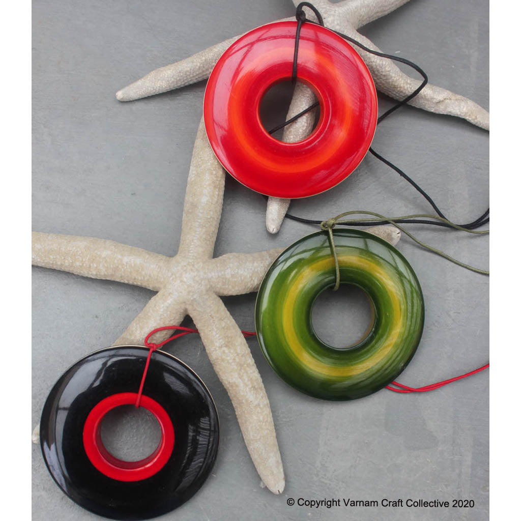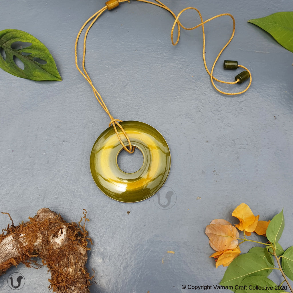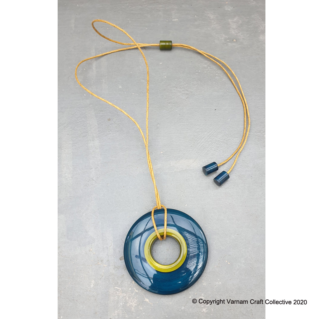 A unique one-of-a-kind style statement from the 'INBAM" series of wooden jewelry by Varnam. This piece has been handcrafted by artisans from Channapatna using the 200 year old toy craft of lac turnery. This is an eco-friendly craft. The colours used are natural dyes and non-toxic. The wood used , 'wrightia tinctoira' or ‘aale-maraa’ is extremely safe. Known for its medicinal properties, the wood is extremely lightweight. It comes in an attractive packaging which makes it a perfect gifting option too !