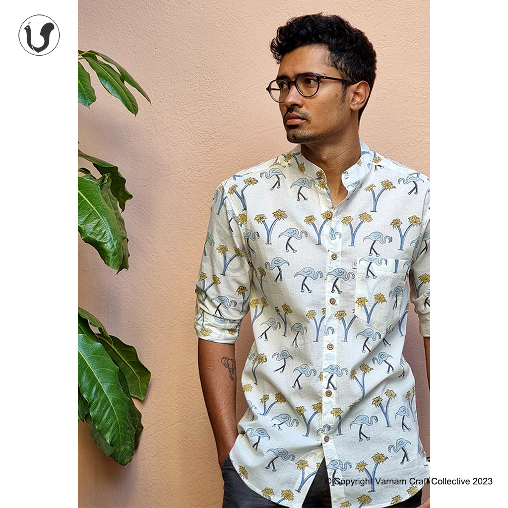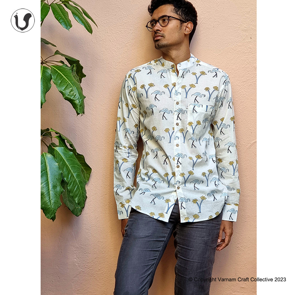 This uber soft, mulmul cotton shirt is a contemporary take on the traditional hand block printing craft of Sanganer, Jaipur. The prints have been custom made using azo-free dyes.