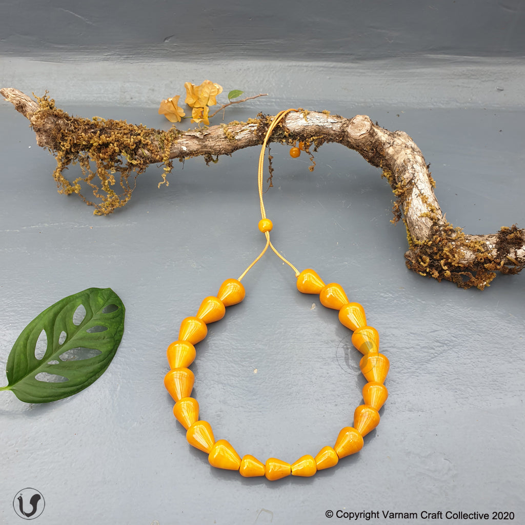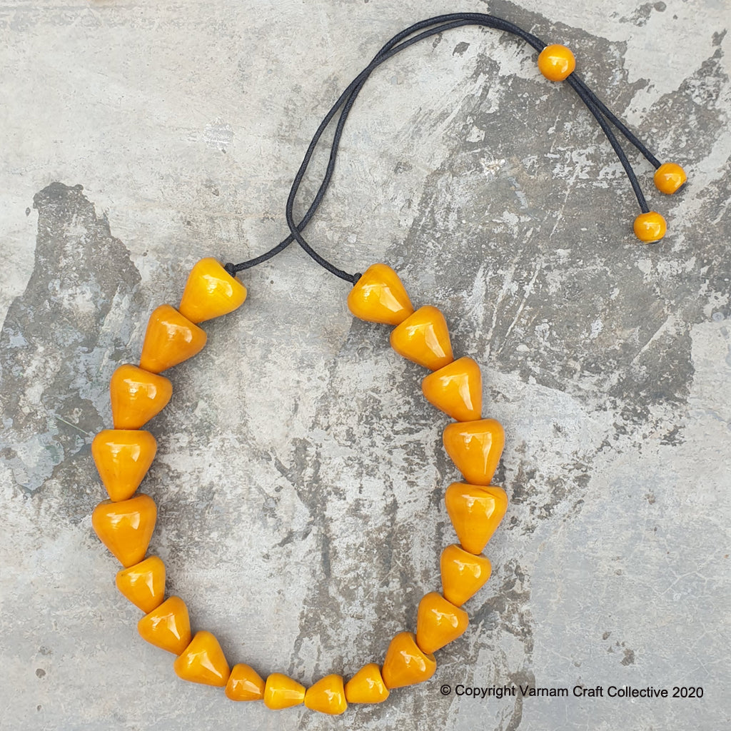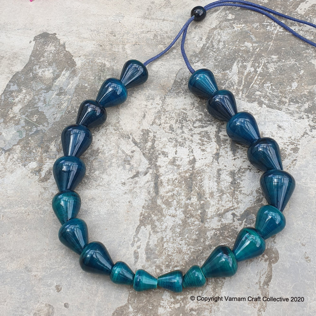 A unique one-of-a-kind style statement from the 'INBAM" series of wooden jewelry by Varnam. This piece has been handcrafted by artisans from Channapatna using the 200 year old toy craft of lac turnery. This is an eco-friendly craft. The colours used are natural dyes and non-toxic. The wood used , 'wrightia tinctoira' or ‘aale-maraa’ is extremely safe. Known for its medicinal properties, the wood is extremely lightweight. It comes in an attractive packaging which makes it a perfect gifting option too !