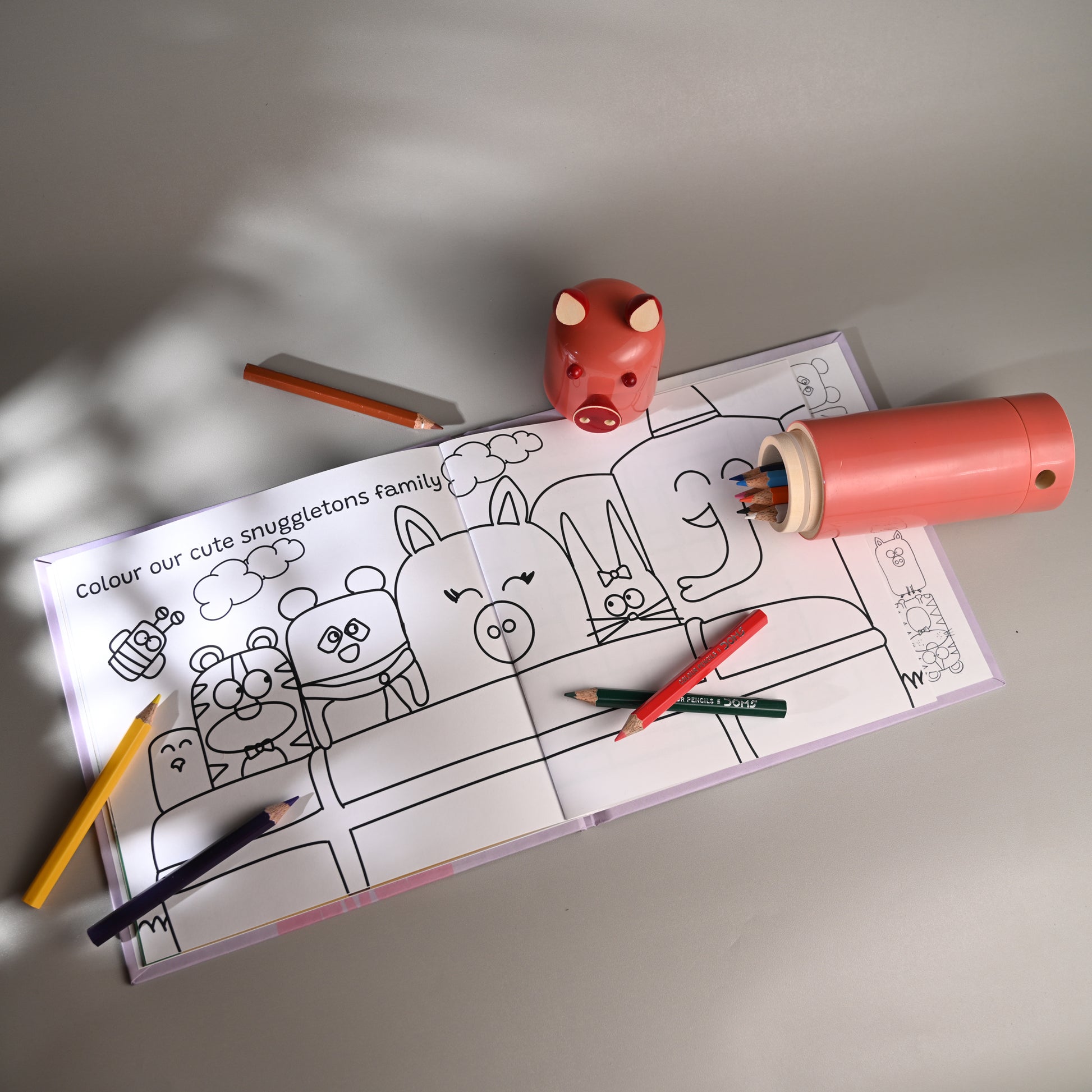 A great gift idea for your little one or also as return gifts for birthday parties, there is also a colouring pencil box set contains 12 half colour pencils, a sharpener at the bottom and a mini colouring booklet of our popular toy animals.