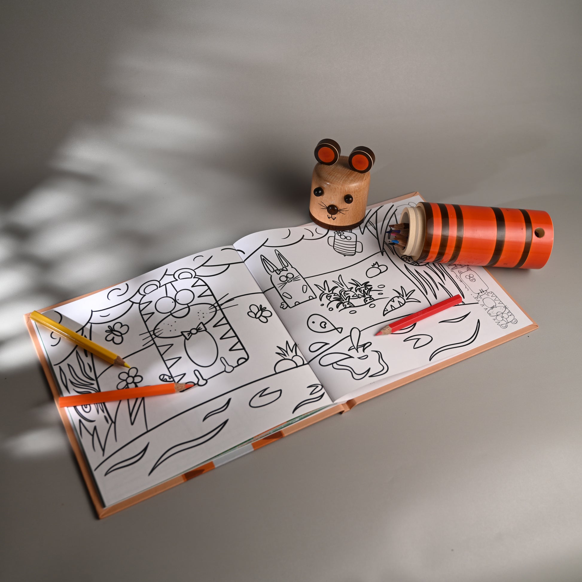 A great gift idea for your little one or also as return gifts for birthday parties, there is also a colouring pencil box set contains 12 half colour pencils, a sharpener at the bottom and a mini colouring booklet of our popular toy animals.