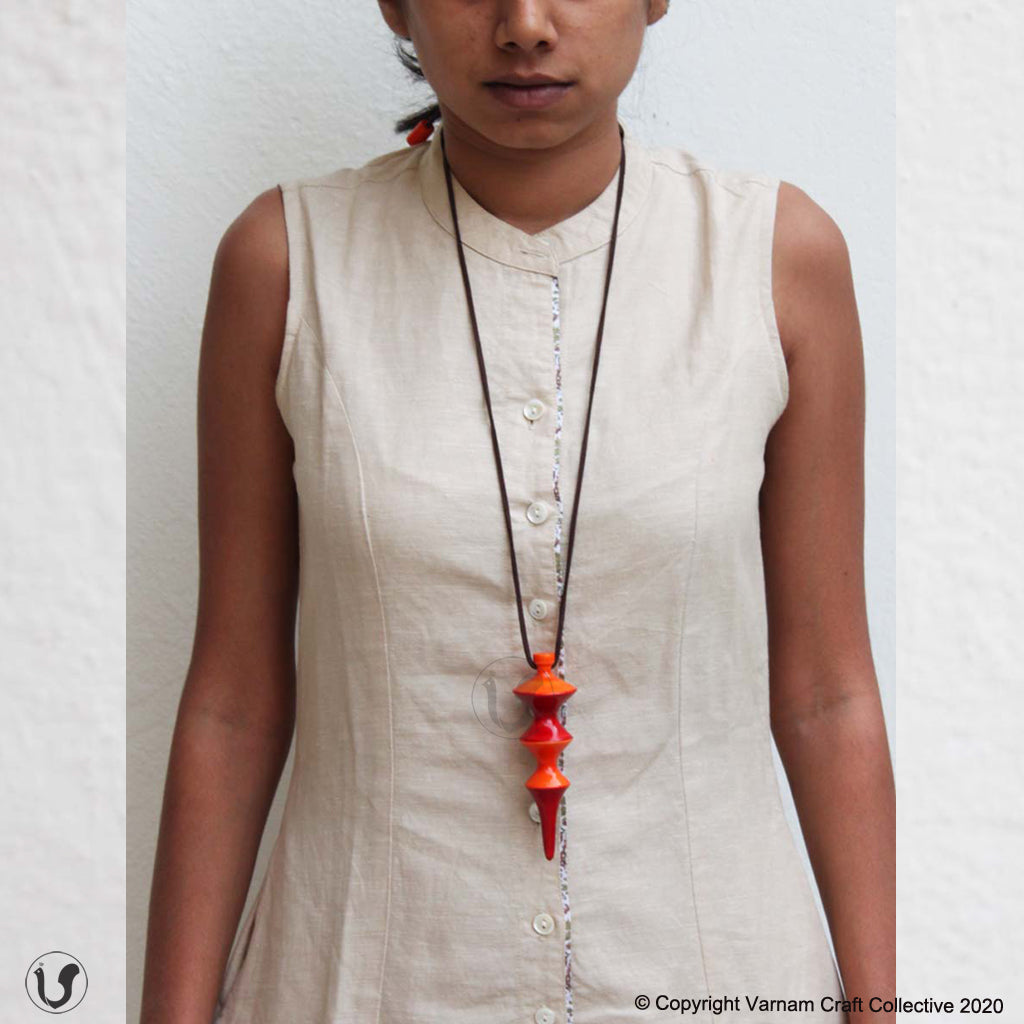 A line of simple, clean design pendants that follow the principle of minimalism. These lightweight wooden statements pieces are perfect for daily wear. Each piece has been handcrafted by artisans from Channapatna using the 200 year old toy craft of lac turnery. The wood used , 'wrightia tinctoira' or ‘aale-maraa’ is extremely safe. Accessorised with a thin leather thread, they are flexible enough to be worn at any length.