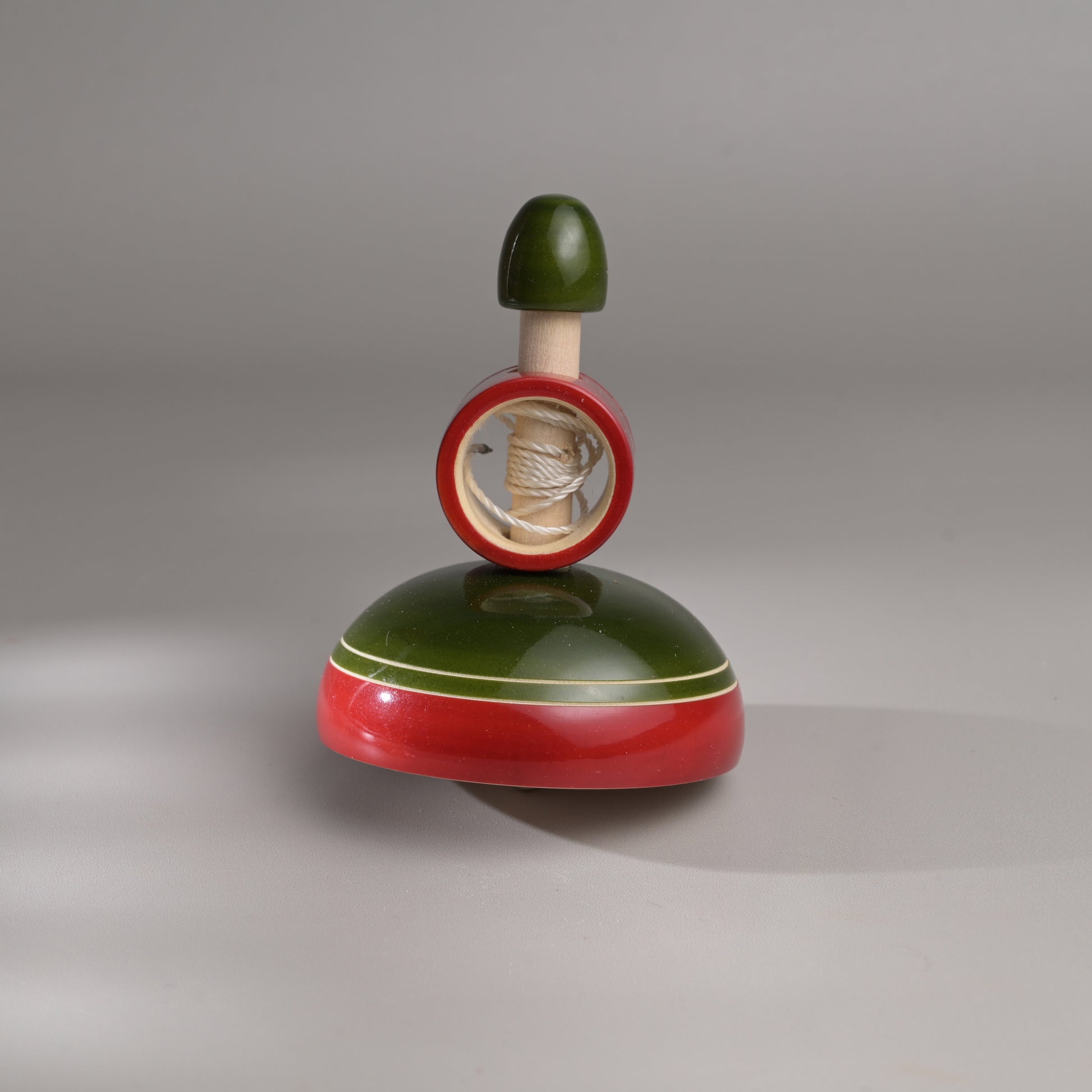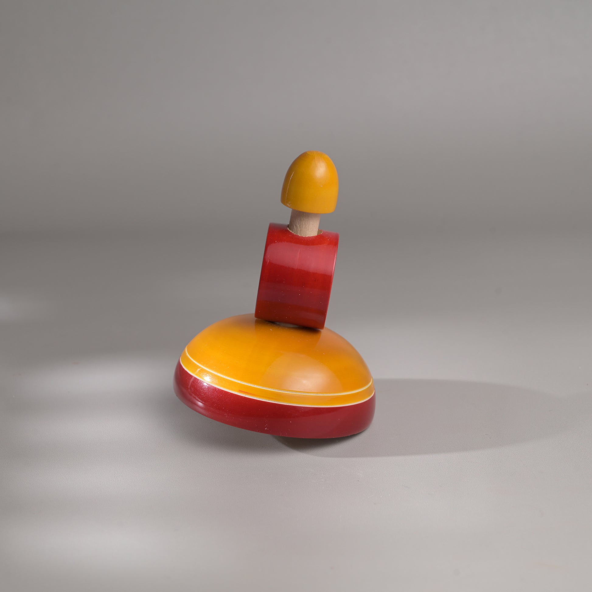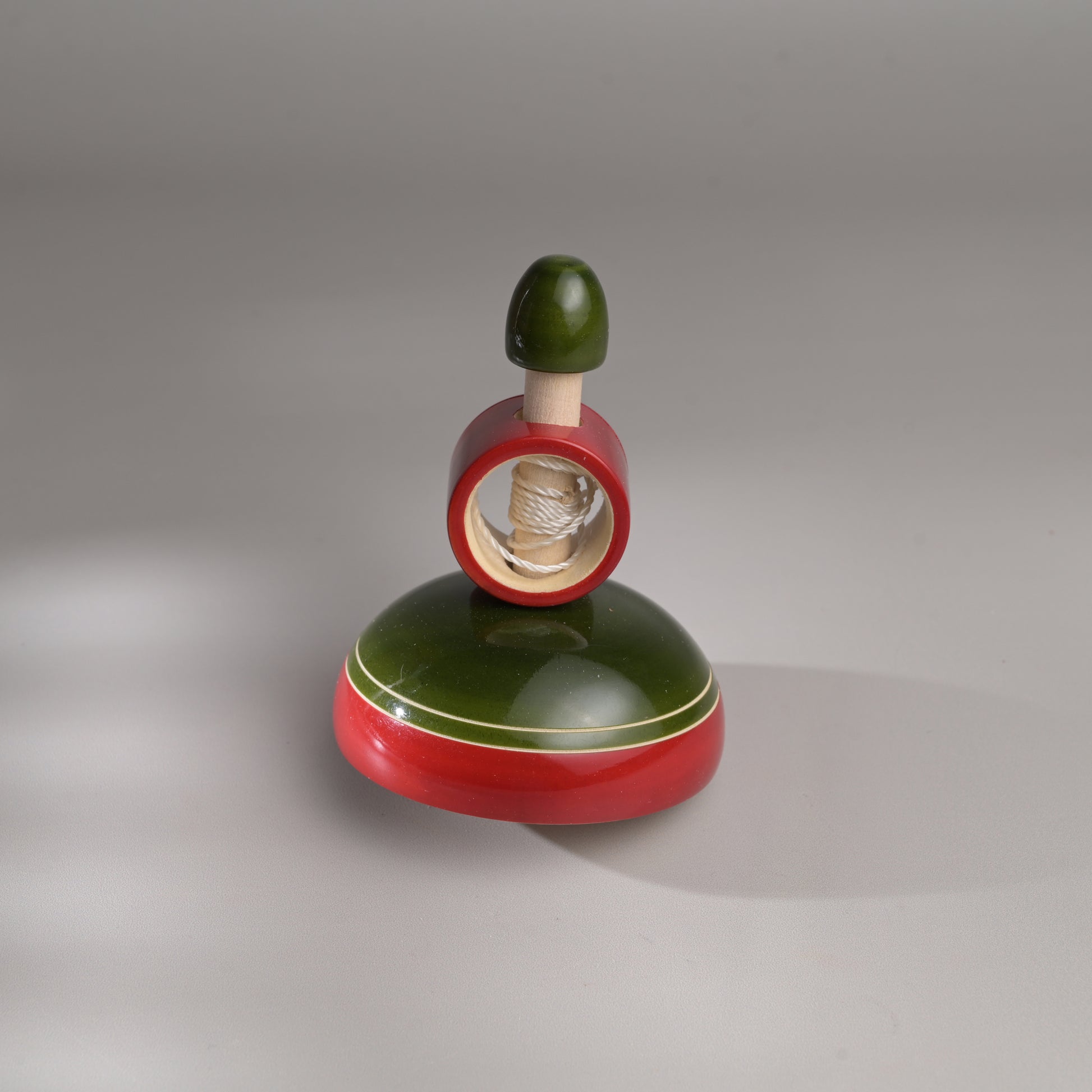 The popular spinning tops that channapatna is famous for, handcrafted by our artisans from channapatna. Hold the top tight between your fingers and pull the thread out, please the spinning top on the ground and watch these light weight tops spin for minutes at a stretch.