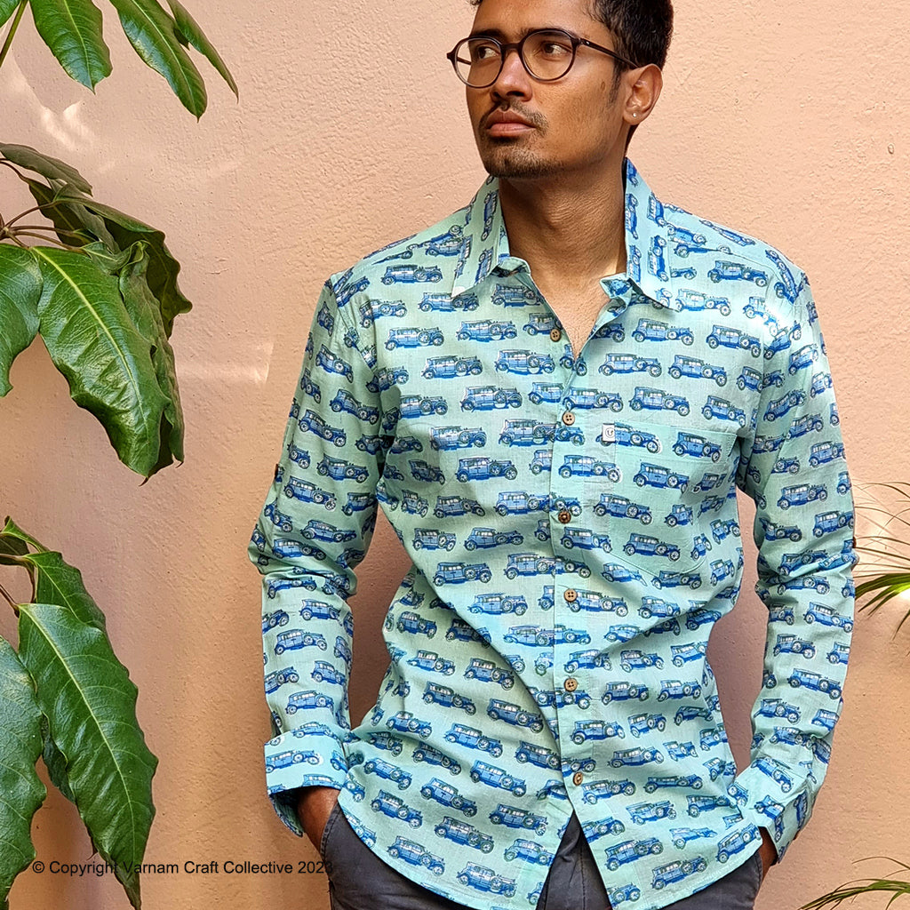 This uber soft, mulmul cotton shirt is a contemporary take on the traditional hand block printing craft of Sanganer, Jaipur. The prints have been custom made using azo-free dyes.