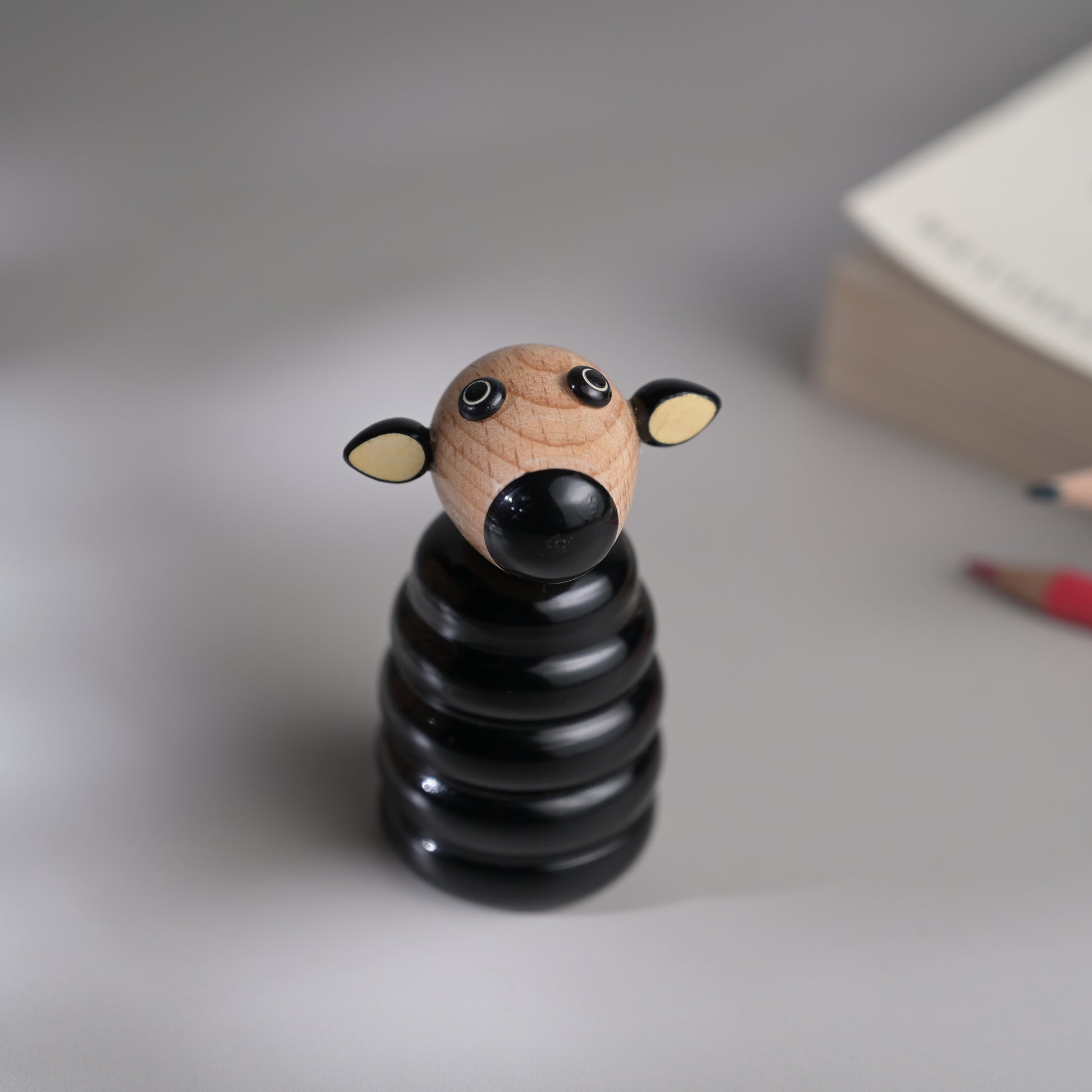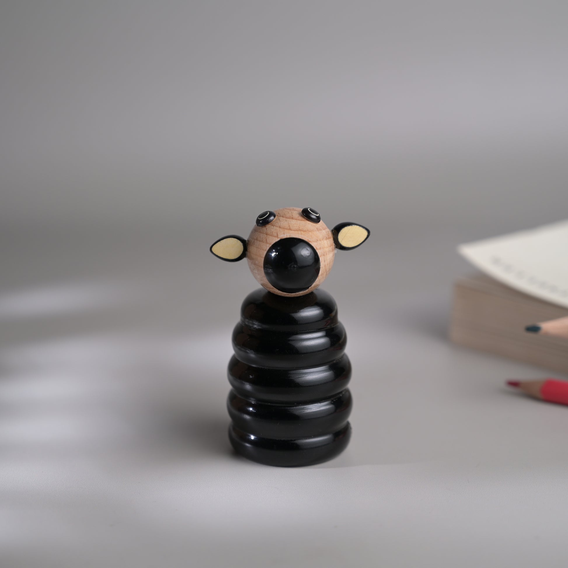 Each piece has been pain stakingly hand-crafted by artisans from Channapatna using the traditional lacquer ware turning technique. The colours used are traditional non-toxic vegetable colours. Any irregularities on the wood are part of its natural beauty. The animal heads are made of beechwood while the sharpener body is made of wrightia tinctoria, or 'hale-mara'. Not suitable for kids below 3 years of age.